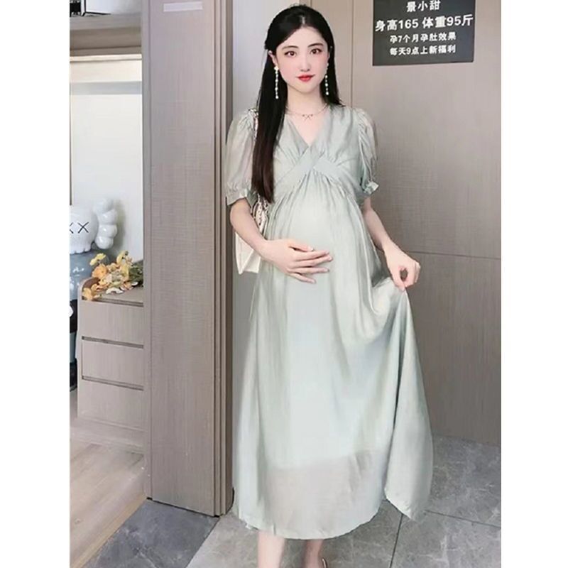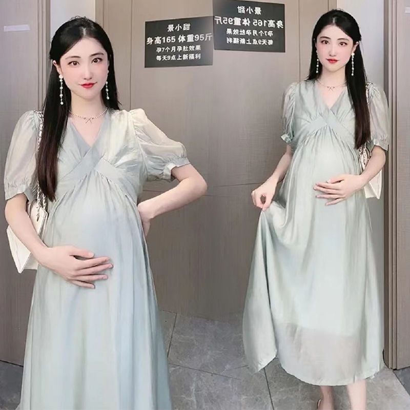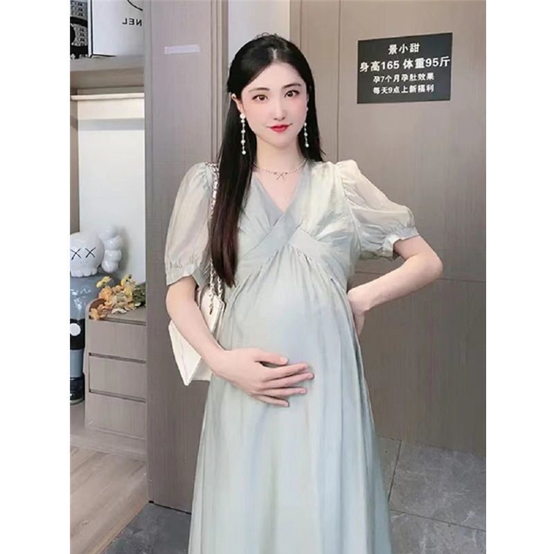 | nameOriginal | Pregnant Women dress French New Summer Internet Popular Foreign Air Collar Design Sense Niche Elegant Fashionable Mother Maternity Dress |