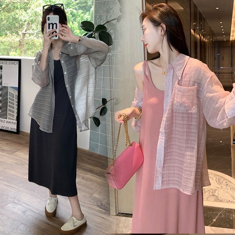 | nameOriginal | Pregnant Women dress suit Summer New Slim Vest Camisole Mid-length Long Sleeve Ice Silk Sun Protection Two-piece Set |
