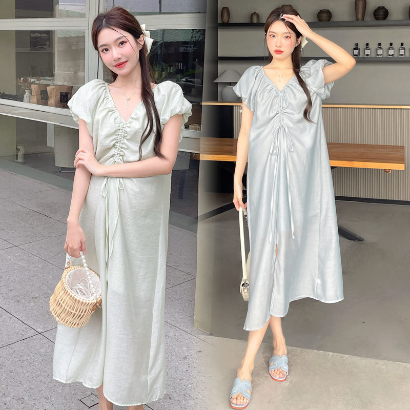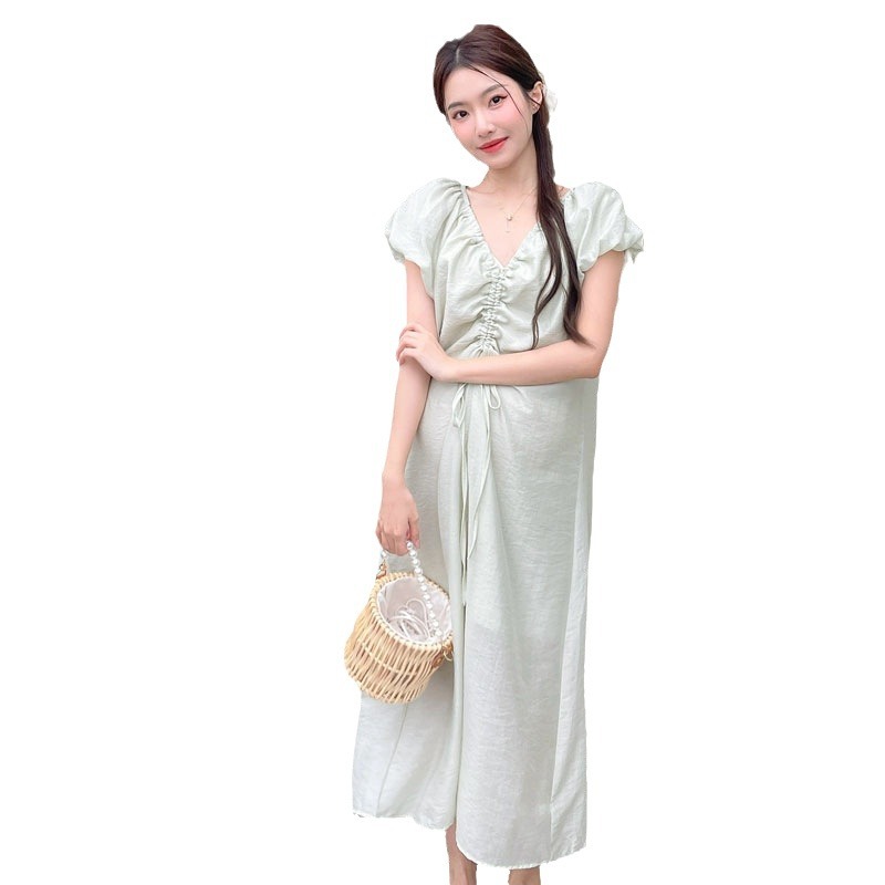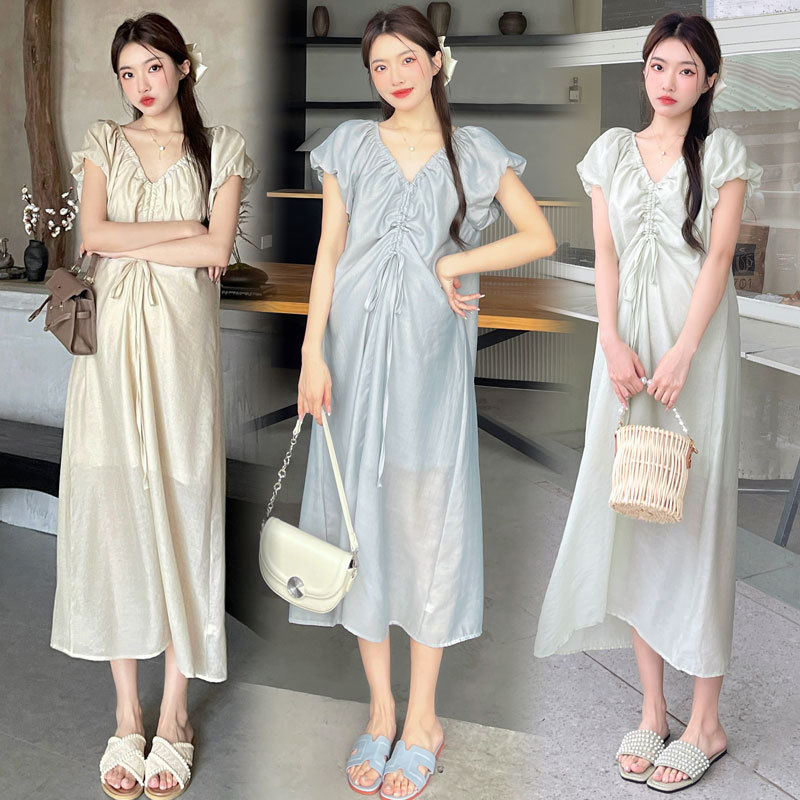 | nameOriginal | Pregnant Women dress Summer 2024 New French Style Design Drawstring V-neck Slim Fairy Short-sleeved Fairy Dress |