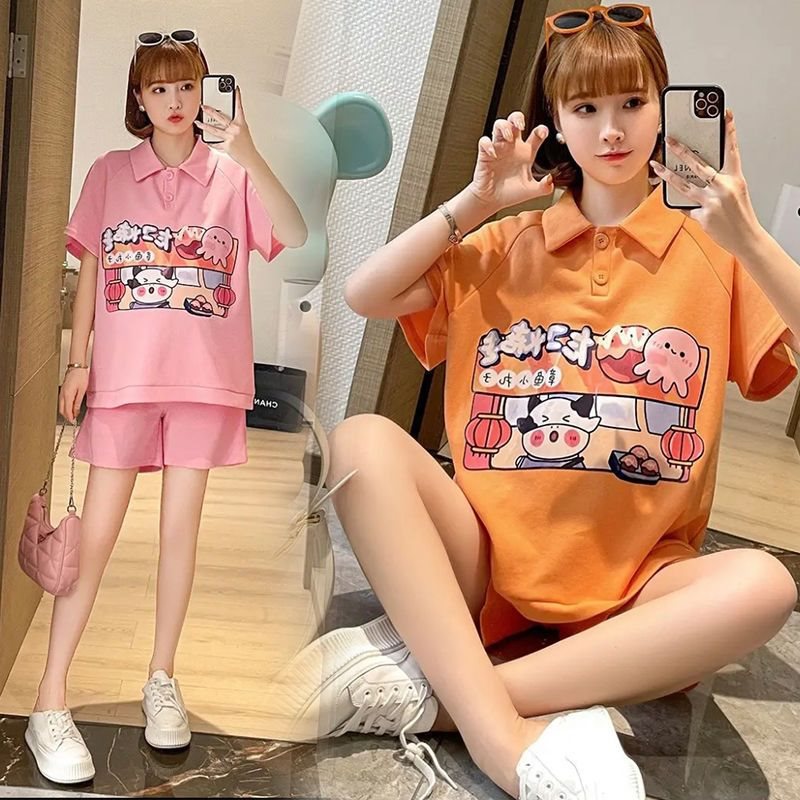 | nameOriginal | Pregnant Women suit Pregnancy External Wear Summer Two-piece Set Loose Small Women's Western Style Internet Celebrity Fashionable Summer Dress Short Sleeve |