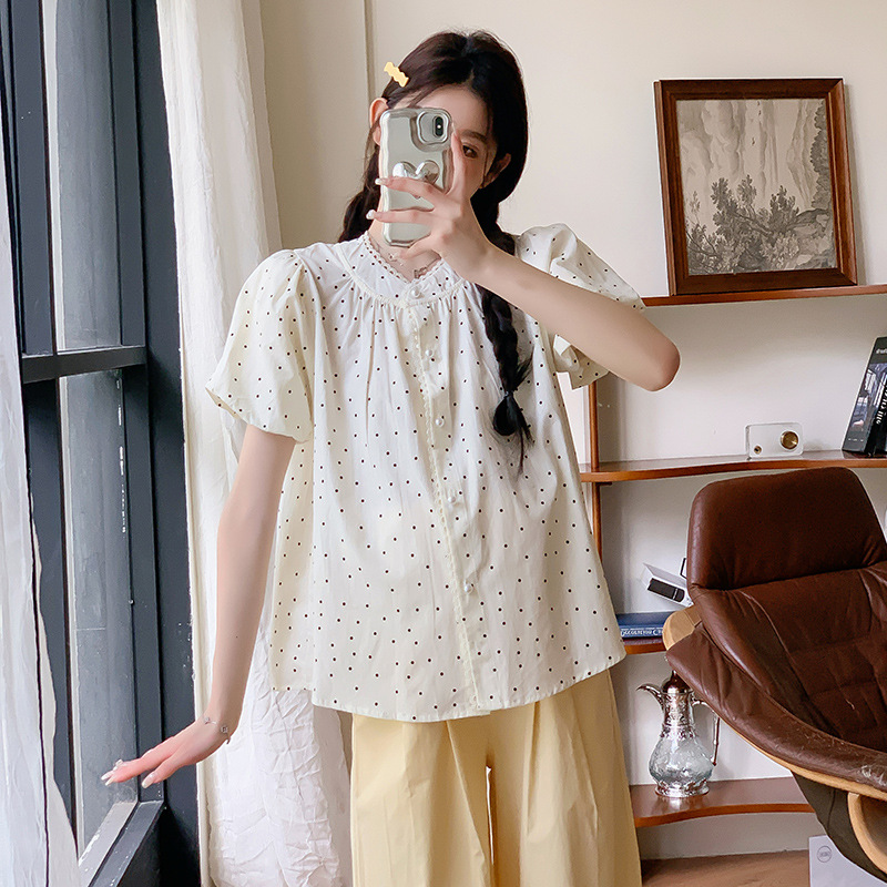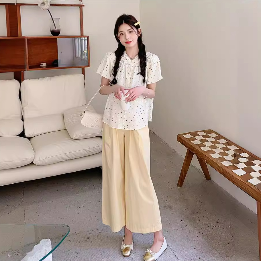 Pregnant Women suit Summer 2024 New Fashion Age-reducing Wave Point Doll Shirt Top Summer Wide Leg Pants Two-piece Set