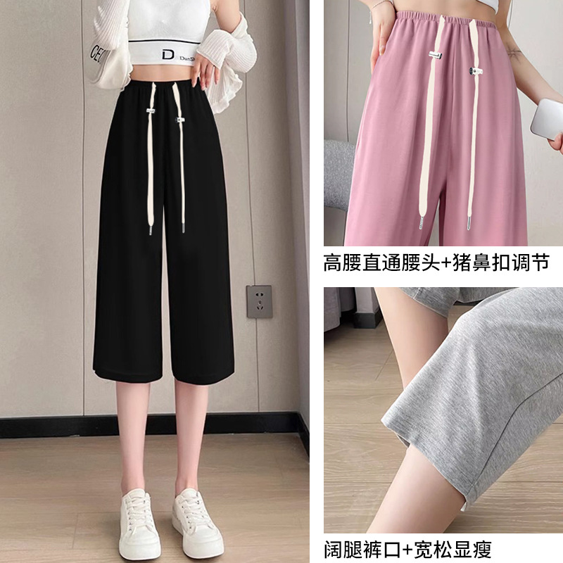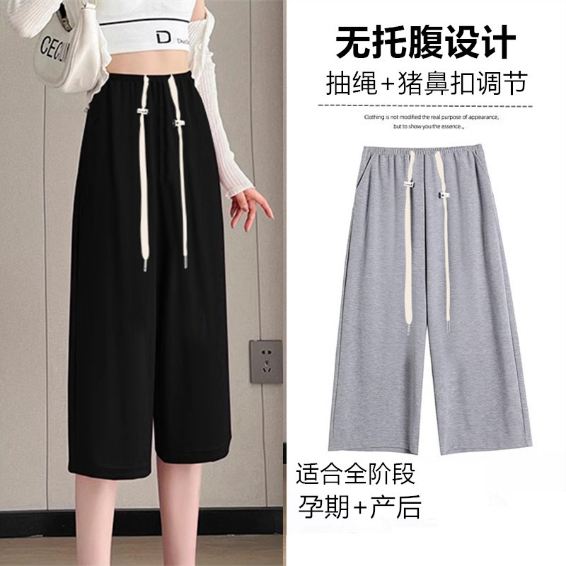 | nameOriginal | Pregnant women's clothing ice silk cropped wide leg pants summer thin high waist loose straight casual pregnant women cool sports pants |