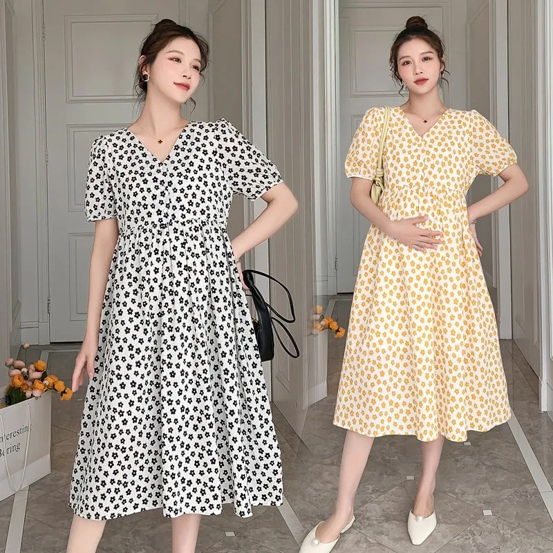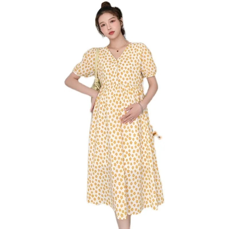 | nameOriginal | Pregnant women's clothing summer nursing clothing fashion temperament V-neck floral out summer loose slim long dress |