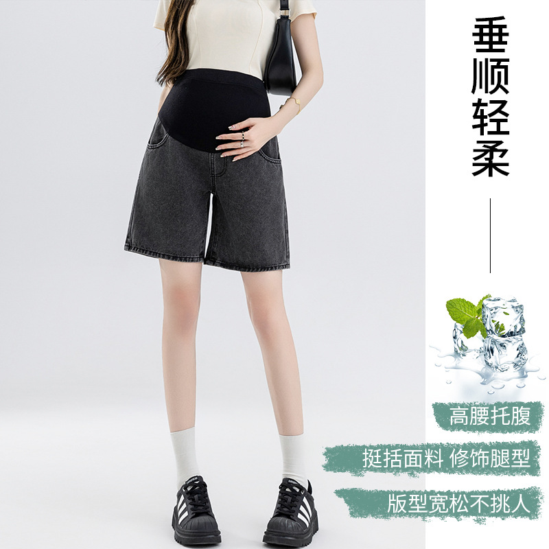 Pregnant Women's Denim Pants Summer Simple Jeans Solid Color Casual Loose Straight Leg Shorts