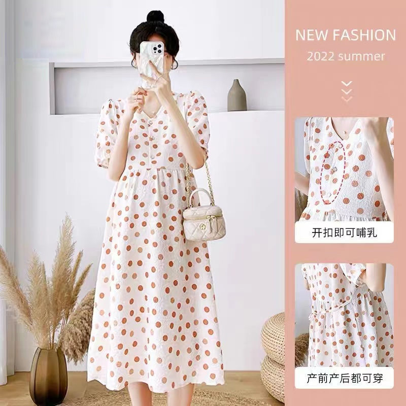 | nameOriginal | Pregnant Women's dress Summer Dress for Breast-feeding Mid-long Loose Pregnancy Wave Dot Fashion Broken Flower Fashion Short-sleeved Maternity Dress |