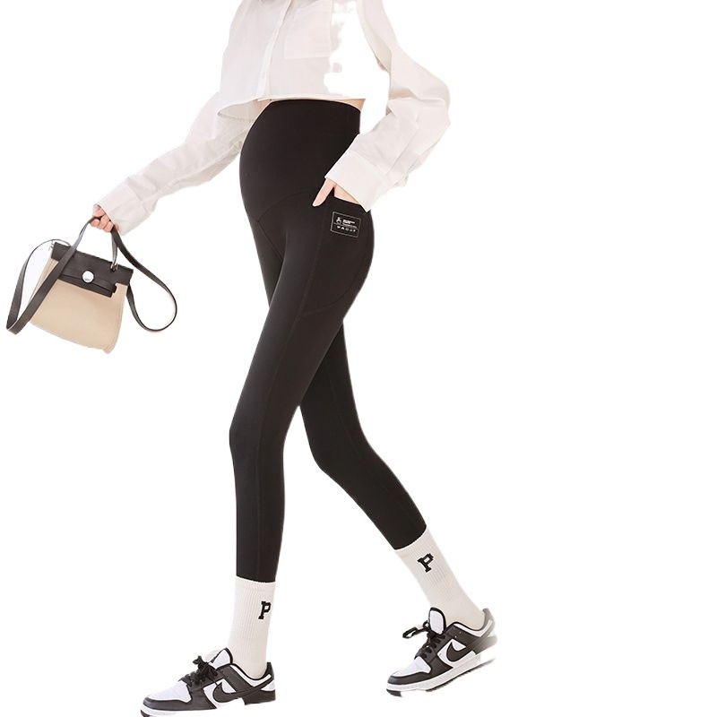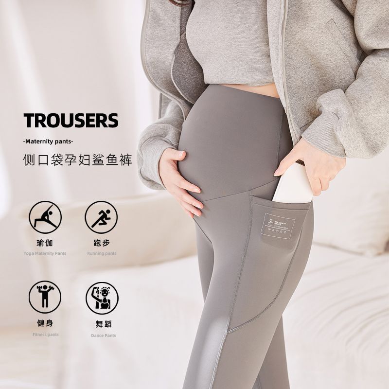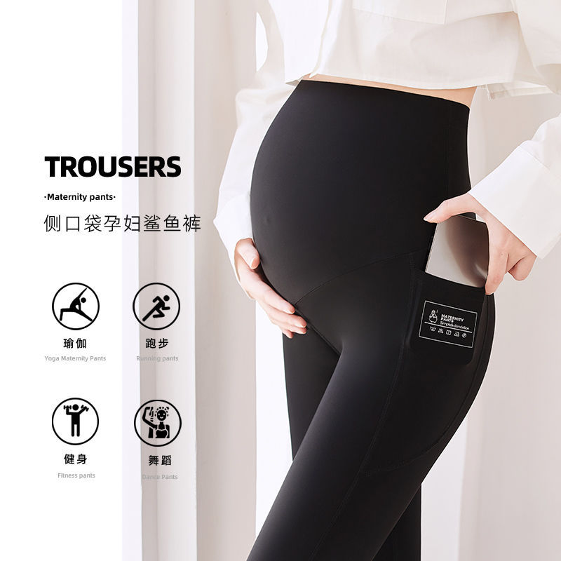Pregnant women’s leggings spring and summer wear cloud feeling seamless pregnant women’s shark pants high waist side pocket pregnant women’s pants autumn and winter