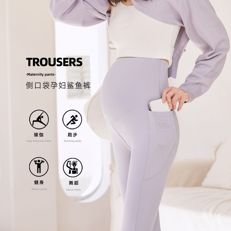Pregnant women's leggings spring and summer wear cloud feeling seamless pregnant women's shark pants high waist side pocket pregnant women's pants autumn and winter