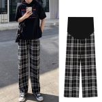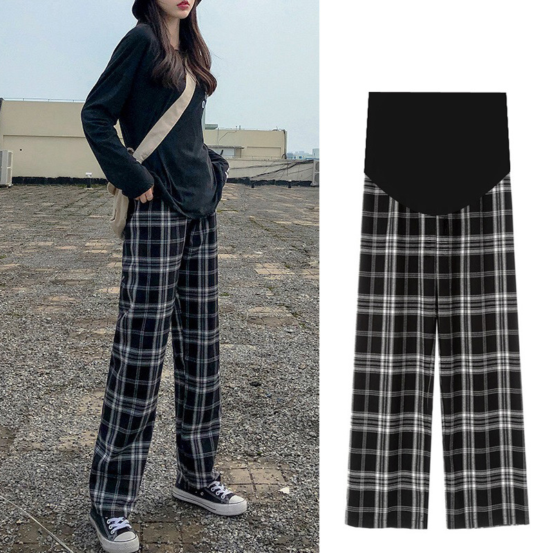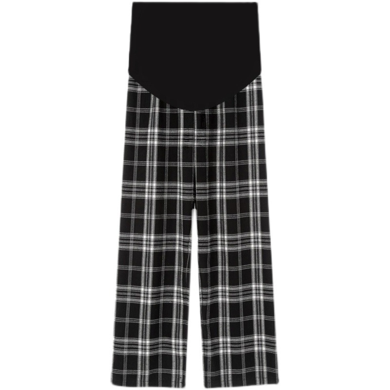 | nameOriginal | Pregnant women's pants autumn and winter fleece-lined thickened outer wear fashionable mom plaid trousers winter loose straight warm wide-leg pants |
