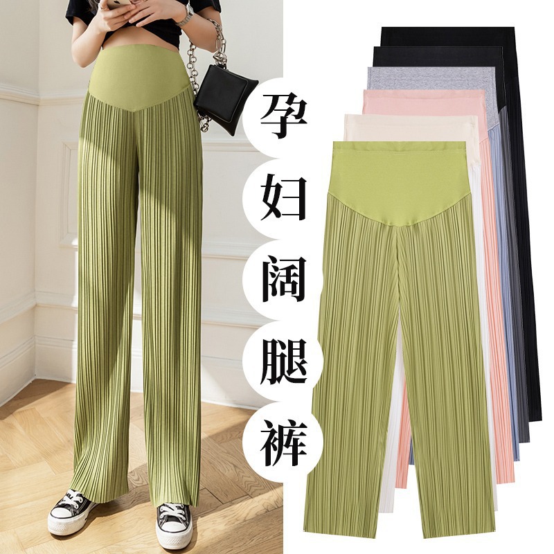 Pregnant women's pants new candy color summer thin Sanzhai pleated draping high waist straight wide leg mop belly pants