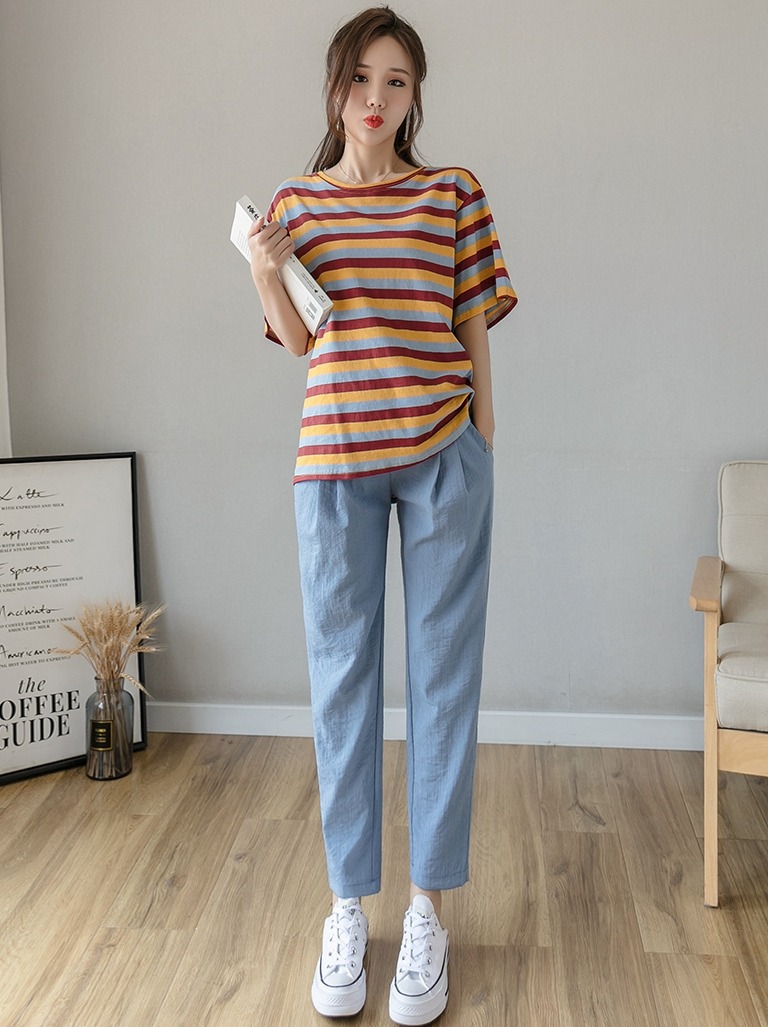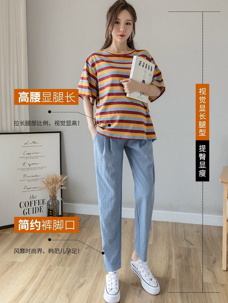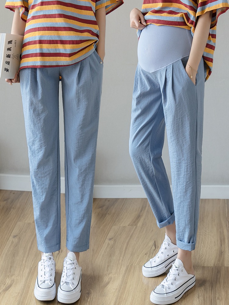 Pregnant women’s pants spring and summer thin outer wear loose casual cotton and linen pregnant women’s pants fashionable breathable elastic soft belly support pants