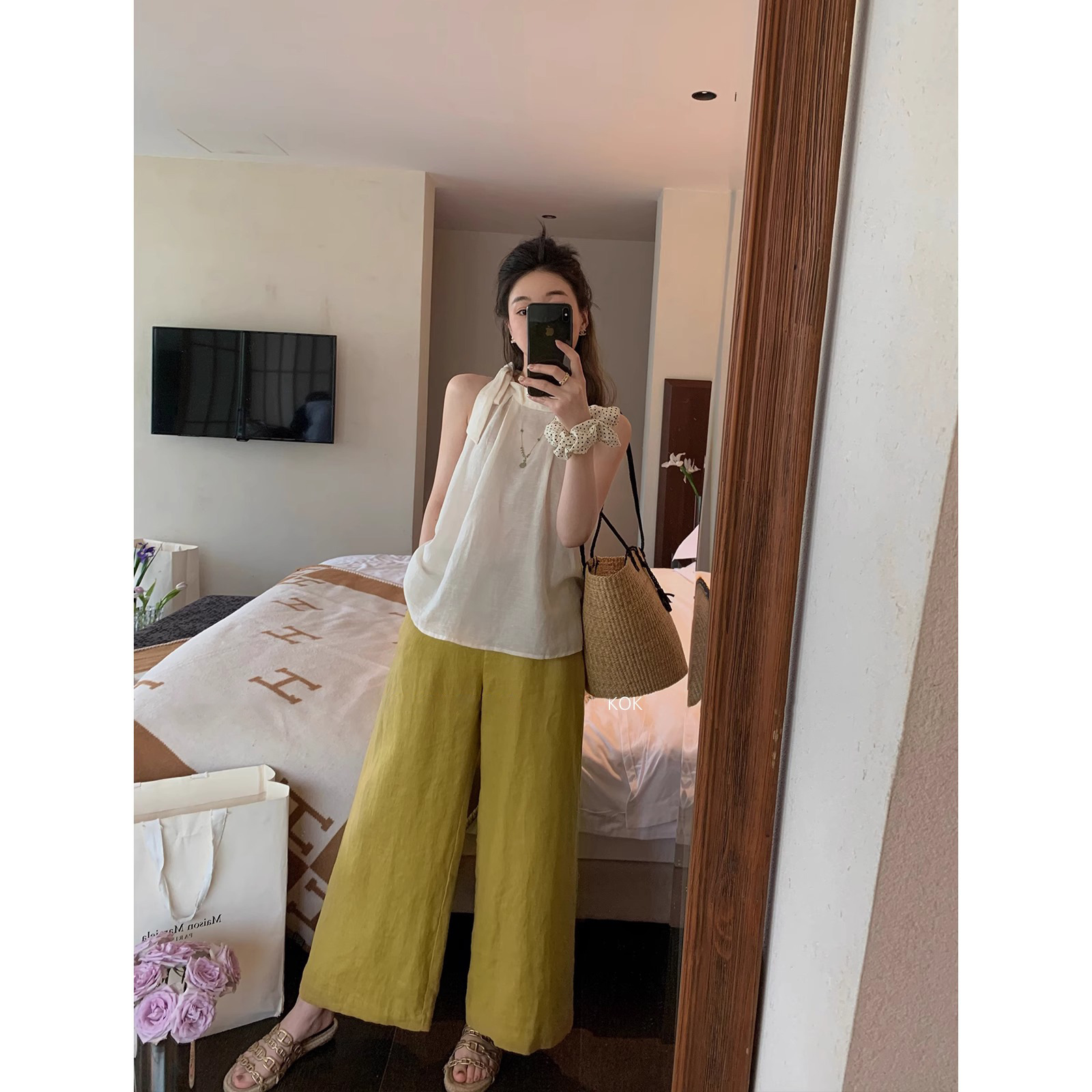 Pregnant Women’s Pants Summer New Arrival Cropped Casual Pants High Waist Loose Slimming Small Wide Leg Pants Thin 1312