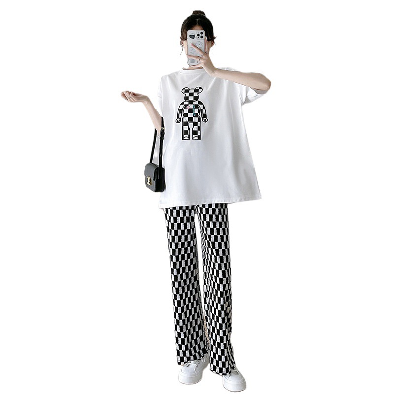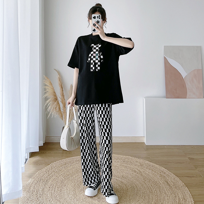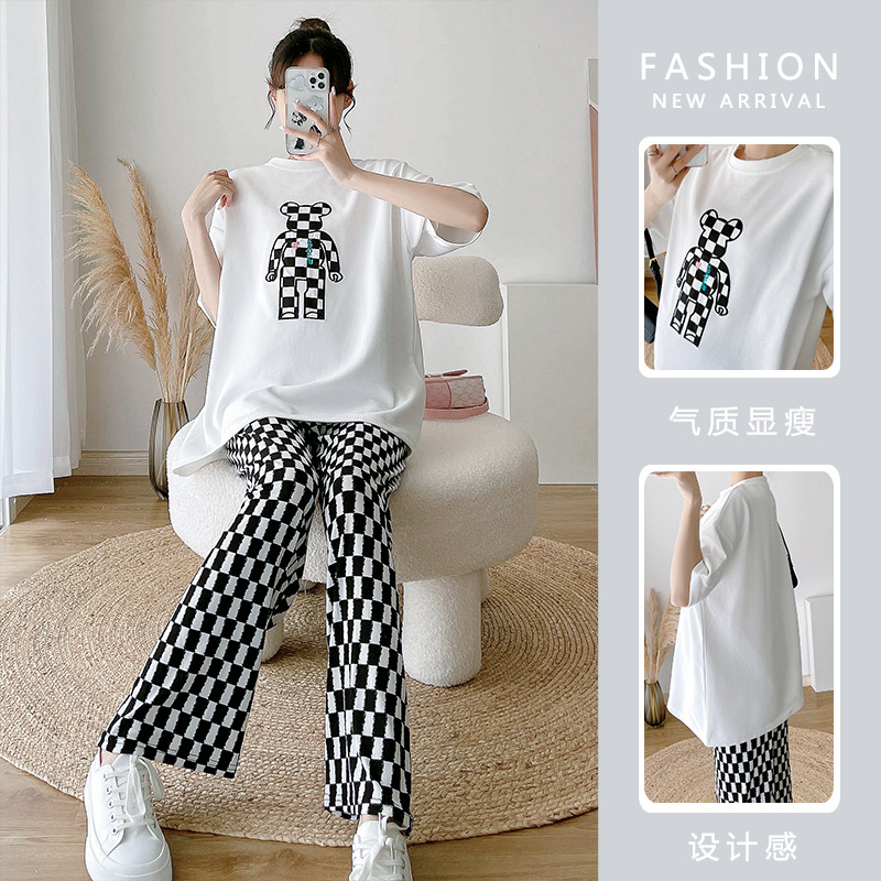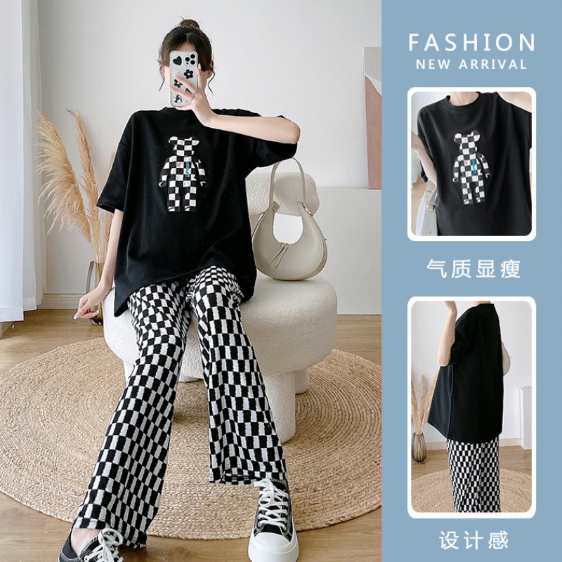 | nameOriginal | Pregnant Women's Short-sleeved suit 2024 New Summer Loose plus size Checkerboard T-shirt Pregnant Women's suit Two-piece Set |