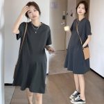Pregnant Women’s Skirt Korean Style Summer Pregnant Women’s dress plus size Loose Skirt High-quality Ice-feeling Cotton New Style Elegant T-shirt Skirt