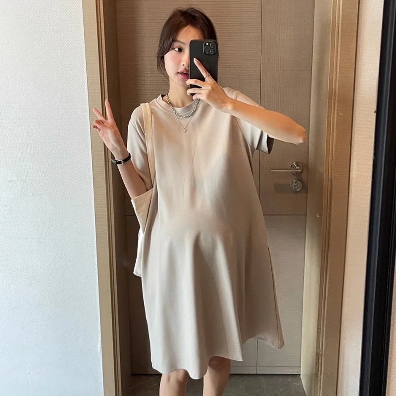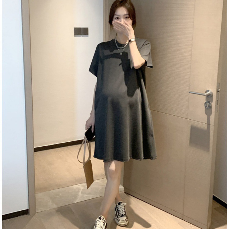 Pregnant Women's Skirt Korean Style Summer Pregnant Women's dress plus size Loose Skirt High-quality Ice-feeling Cotton New Style Elegant T-shirt Skirt