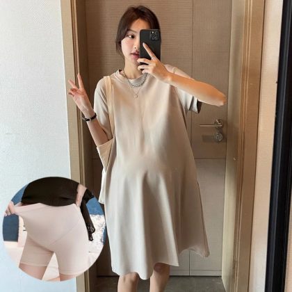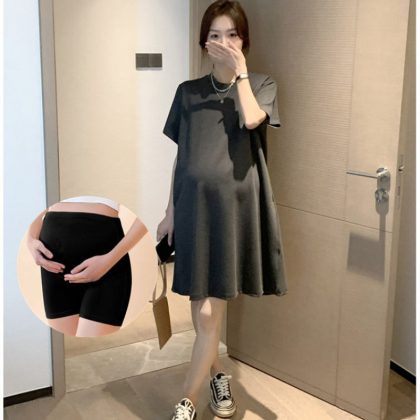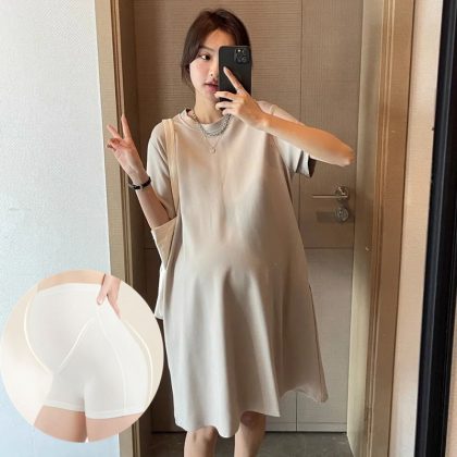 Pregnant Women’s Skirt Korean Style Summer Pregnant Women’s dress plus size Loose Skirt High-quality Ice-feeling Cotton New Style Elegant T-shirt Skirt