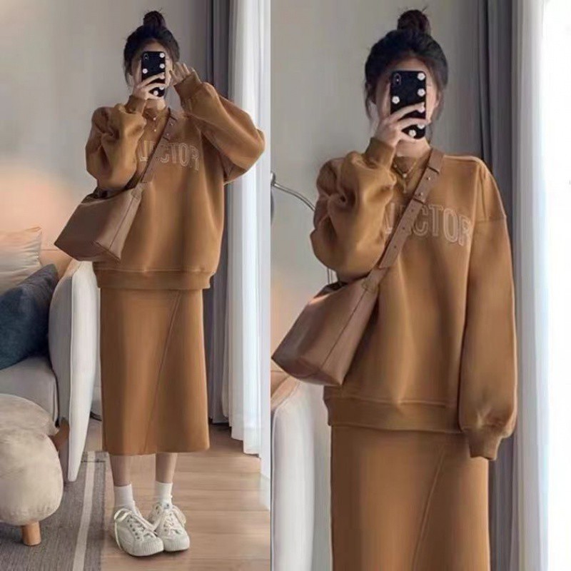nameOriginal | Pregnant Women's Spring Clothes suit Going Out Fashion Spring and Autumn New Style Jacket Coat Autumn and Winter Sweatshirt Skirt Two-piece Set |