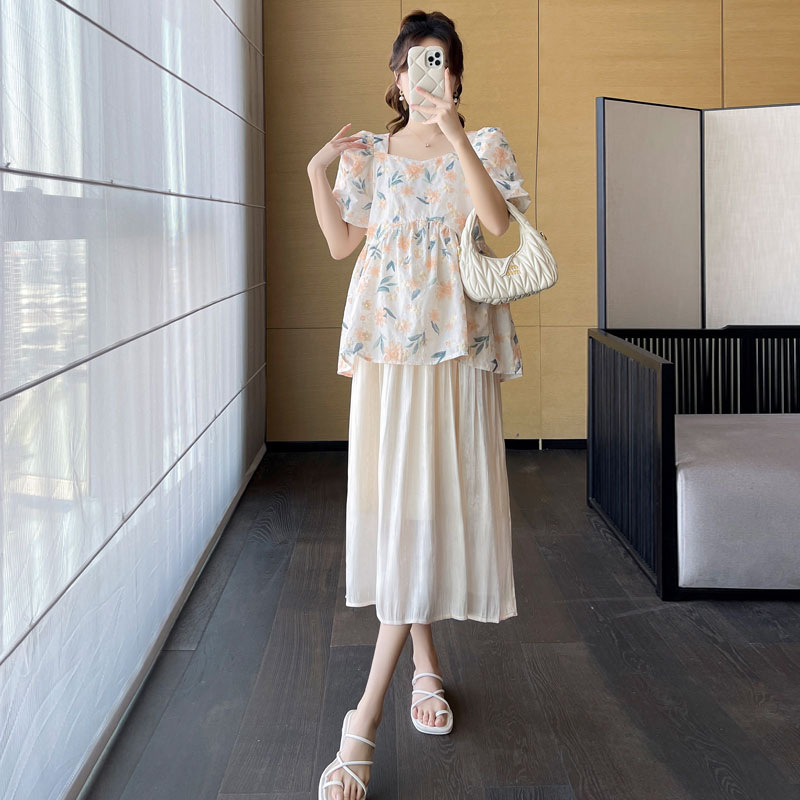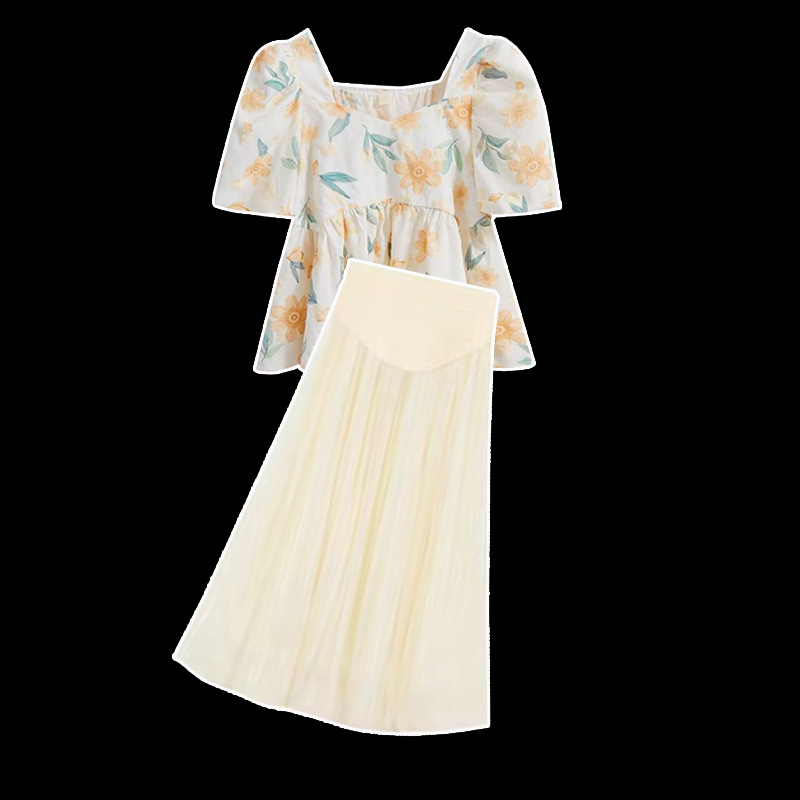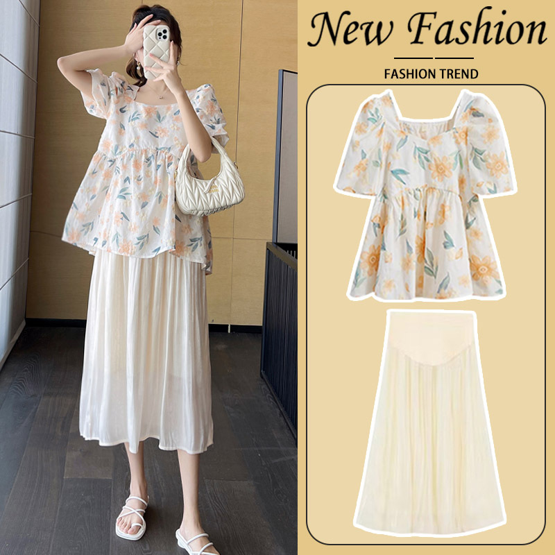 Pregnant Women’s Suit Fashion Summer Western Style Fashionable 2023 New Arrival Summer Skirt Two-Piece Summer Short-Sleeved Top