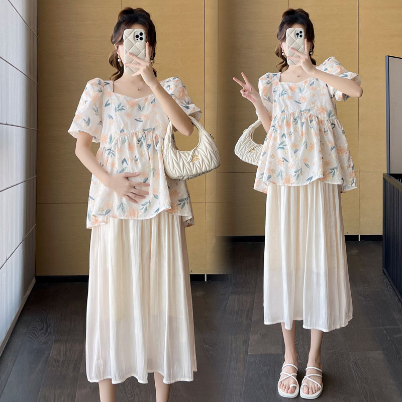 Pregnant Women's Suit Fashion Summer Western Style Fashionable 2023 New Arrival Summer Skirt Two-Piece Summer Short-Sleeved Top