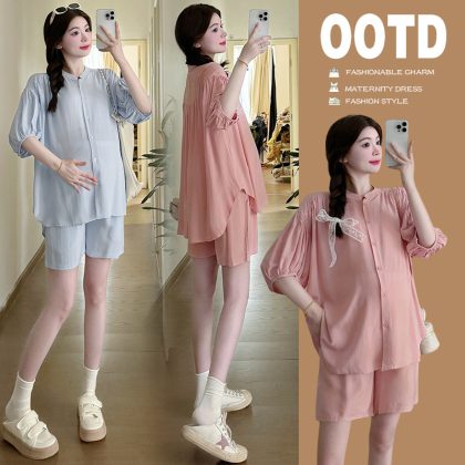 | nameOriginal | Pregnant women's suit ice silk salt high-end sense age-reducing fashion temperament shorts two-piece set |