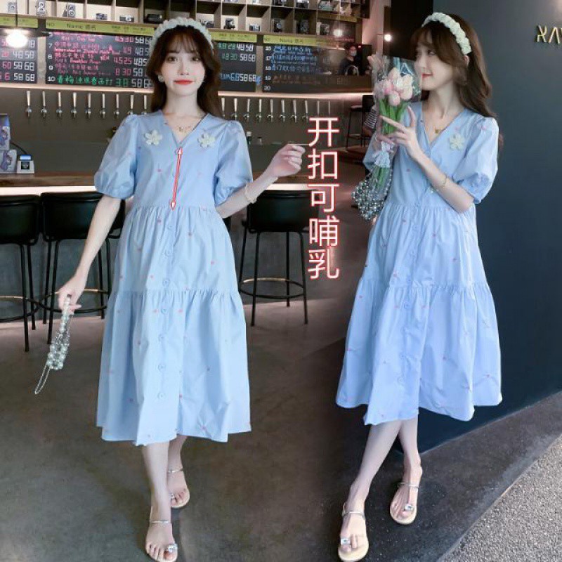 | nameOriginal | Pregnant Women's Summer Dress Fashion Small Fresh Super Fairy Embroidery Collar Flower Fried Street Sweet Age-reducing Lactation Word Dress Trendy Mom |