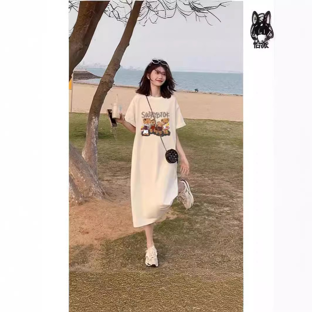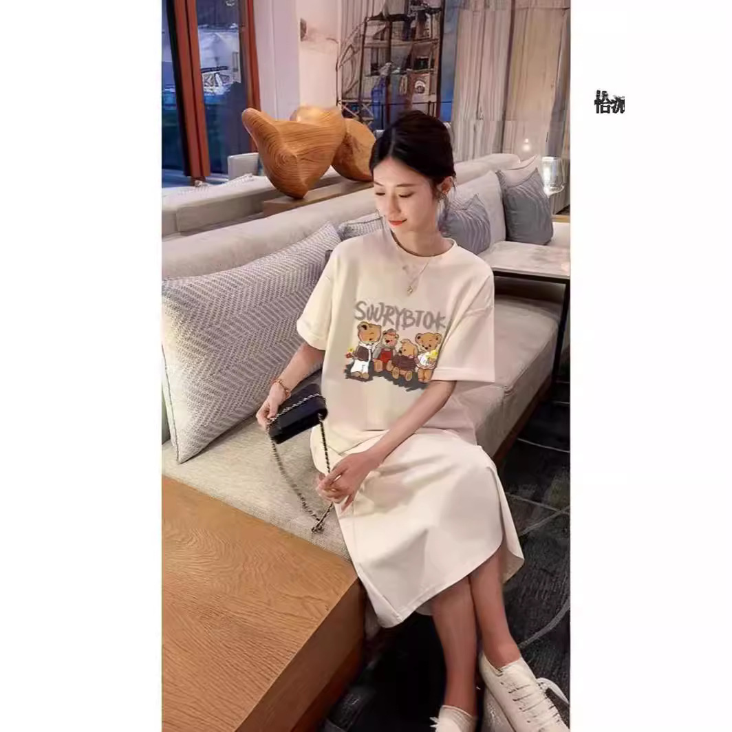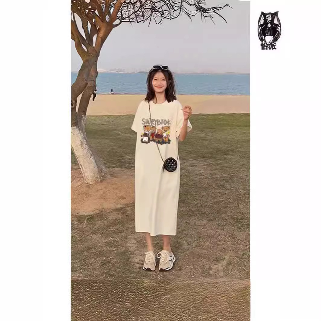 | nameOriginal | Pregnant Women's Summer Dress Pregnant Period Fashion Bear Short-sleeved Loose Side Split Long Over-the-knee Skirt Pocket Thin |
