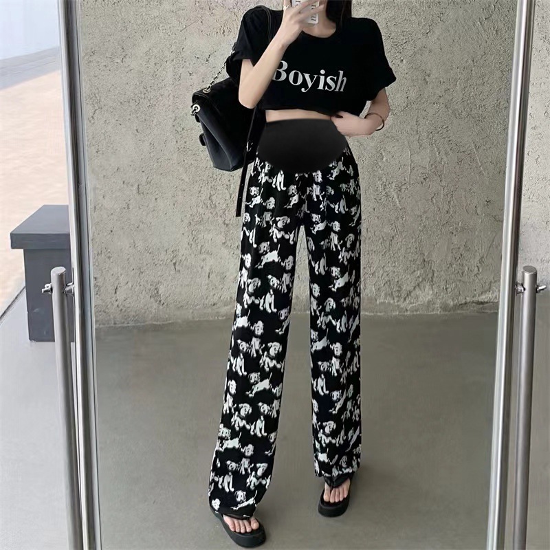 | nameOriginal | Pregnant women's summer new printed puppy ice silk wide-leg pants fashion straight pants trousers |