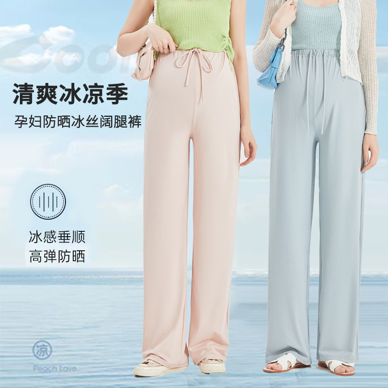 | nameOriginal | Pregnant women's summer sun protection casual fashion wide-leg pants no belly support drawstring design cool air conditioning pants loose maternity clothes |