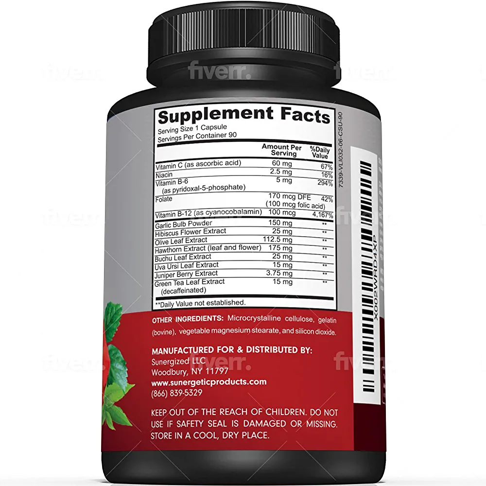 Sunergetic Premium Blood Pressure Support Supplement is a natural dietary supplement designed to help maintain healthy blood pressure levels. This supplement contains a powerful blend of natural ingredients including garlic, hawthorn, and hibiscus, which are known for their ability to support cardiovascular health. The supplement comes in a bottle of 90 capsules, providing a 30-day supply. Garlic is known for its ability to support healthy blood pressure levels, while hawthorn and hibiscus are known for their ability to promote healthy circulation. This supplement is made with high-quality ingredients and is free from artificial colors, flavors, and preservatives. It is suitable for vegetarians and is easy to incorporate into your daily routine. With regular use, Sunergetic Premium Blood Pressure Support Supplement can help you maintain healthy blood pressure levels and support overall cardiovascular health.