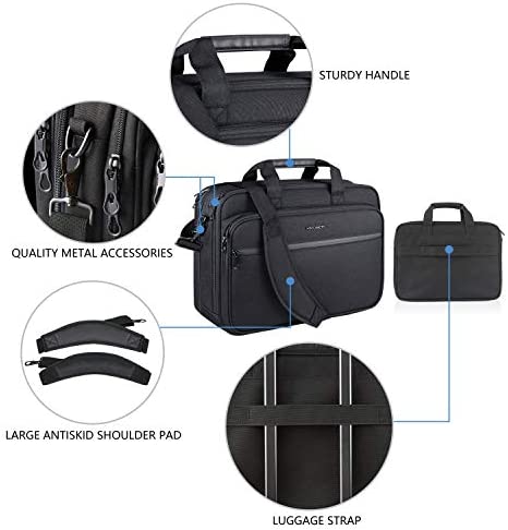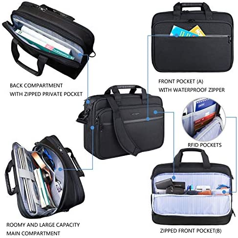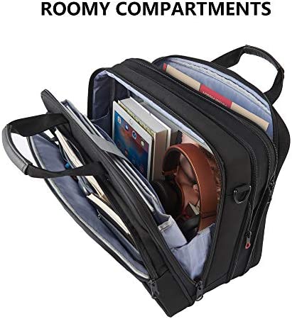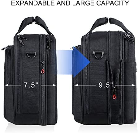 The expansion zipper allows you to increase the width of the bag from 7.5″ to 9.5″, providing more space in the main compartment. The main compartment has soft padding and a velcro strap to protect your laptop, as well as small pockets for accessories. The back compartment is perfect for notebooks and file folders, and there is a zippered hidden anti-theft pocket to protect your valuables. The front pockets have divider pockets and pen holders for organization, and there are built-in RFID pockets for identity protection.