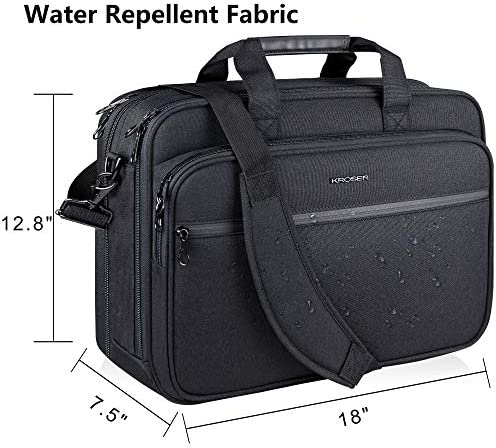 This expandable briefcase is perfect for travel, college, business, school, or casual use. It is made of durable water-repellent canvas poly fabric and comes in a standard size of 18”x12.8”x7.5” and an expandable size of 18”x12.8”x9.5”. The bag weighs 2.88LBS and comes with a laptop bag and shoulder strap.