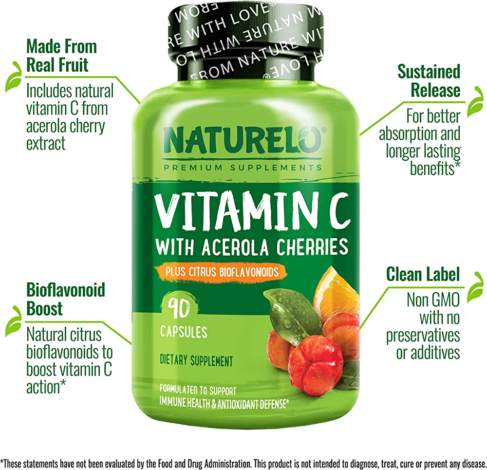 | nameOriginal | NATURELO Premium Vitamin C with Organic Acerola Cherry and Citrus Bioflavonoids – Whole Food Powder Supplement – Not Synthetic Ascorbic Acid – 500 mg – Non-GMO – Raw Vegan – 90 Capsules |