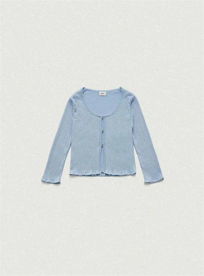 PREON thin temperament solid color round neck cardigan suspender