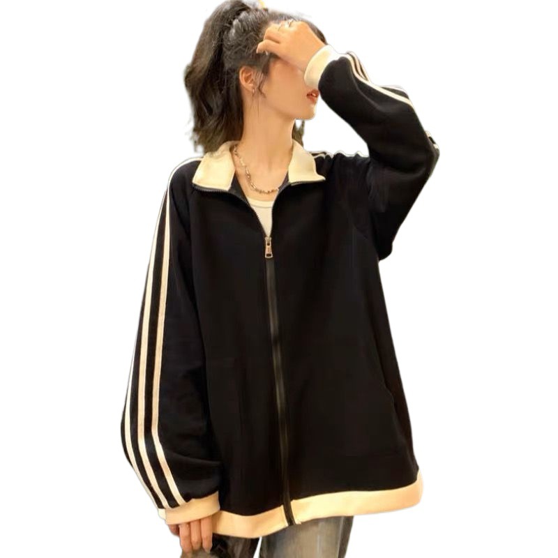 Preppy style contrast color stitching new Korean style loose stand collar sweater women’s spring and autumn thin bf versatile loose top women