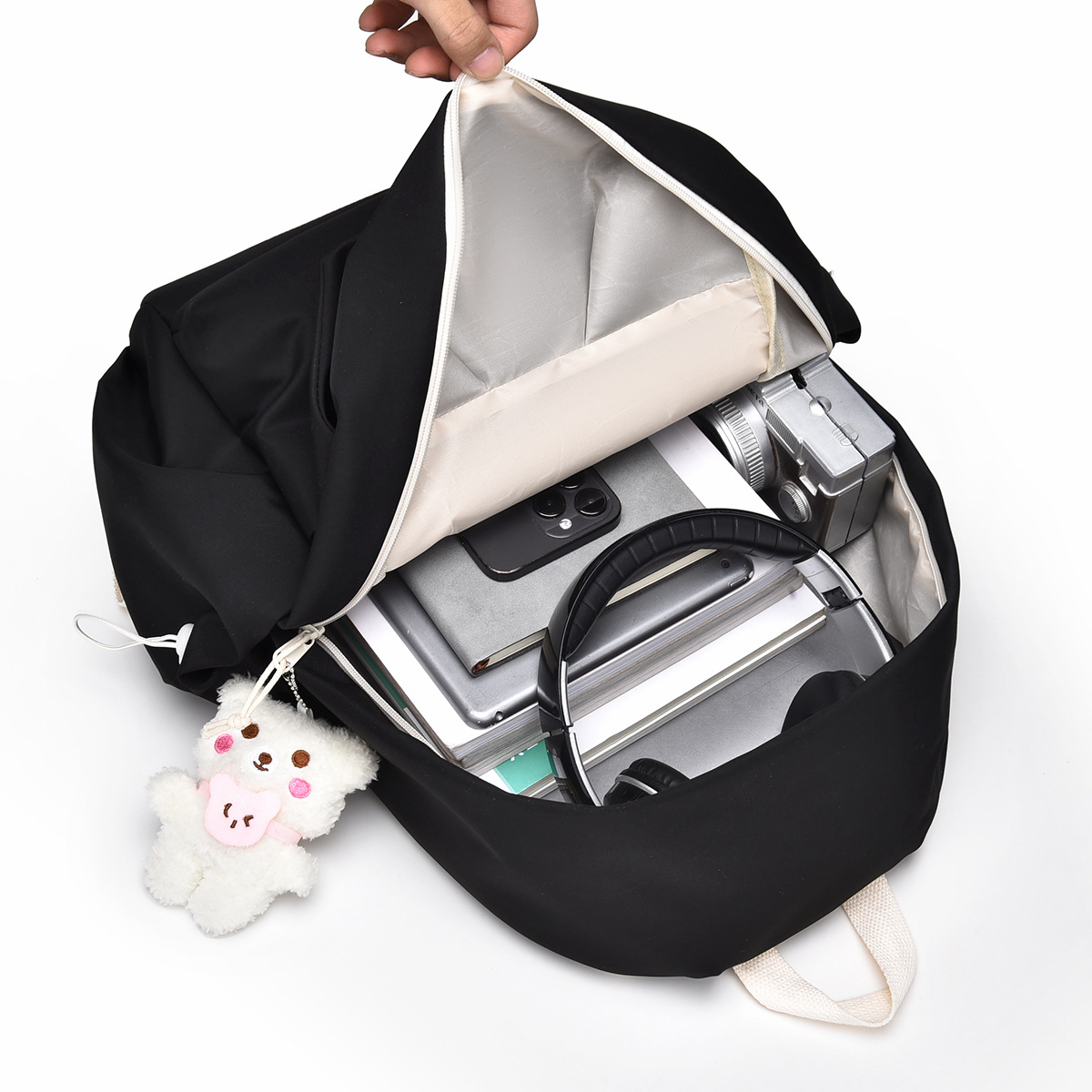 | nameOriginal | Preppy style schoolbag cute girls' backpack color matching strap pendant large capacity men's and women's Korean-style fashion printed logo |
