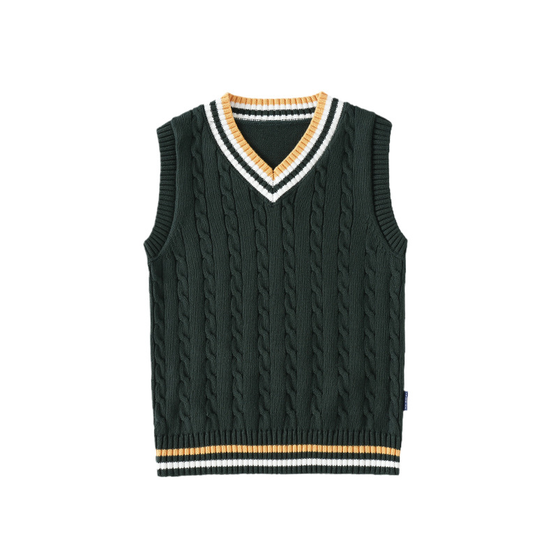 Preppy style spring and autumn knitted sweater waistcoat British cotton sports vest children’s vest student school uniform vest