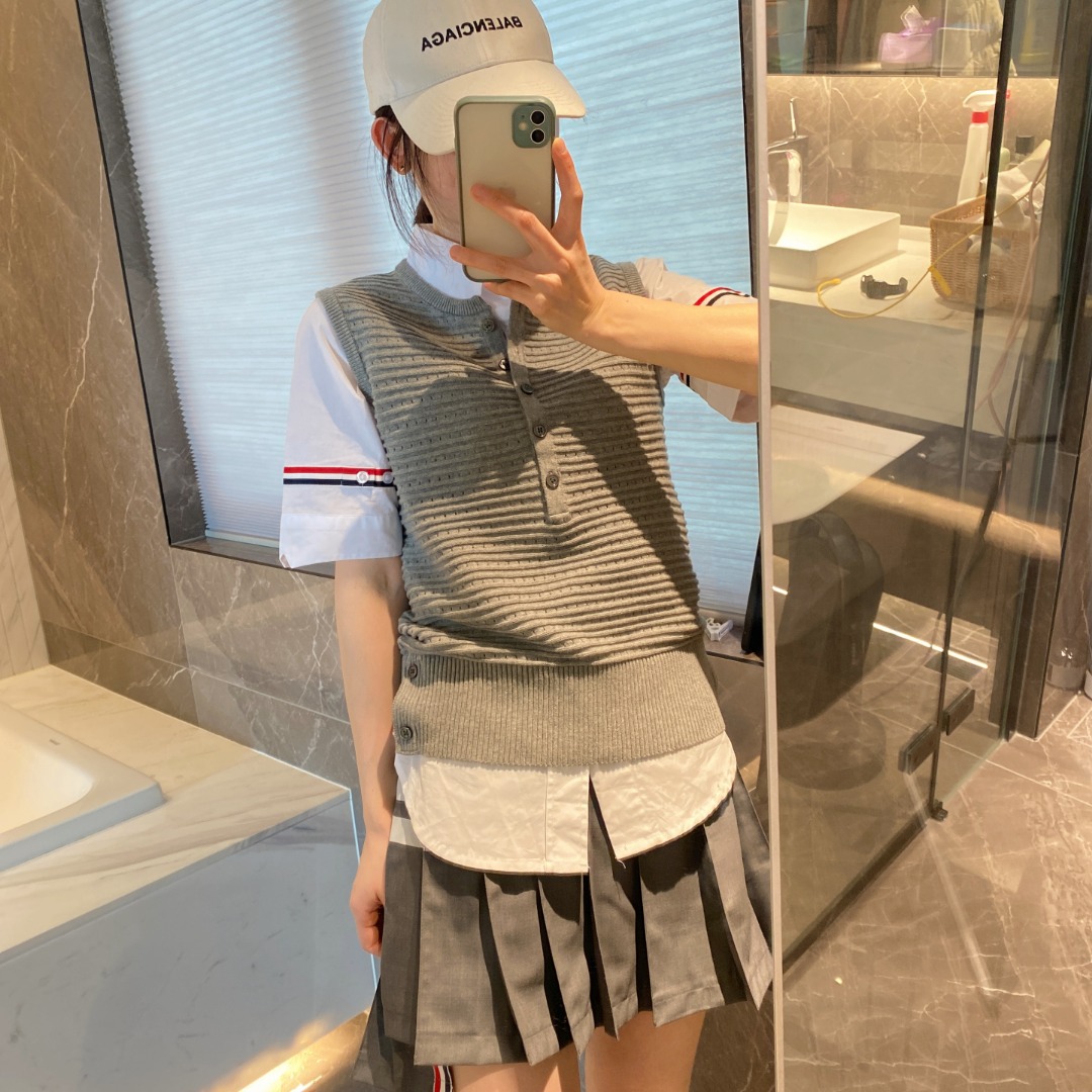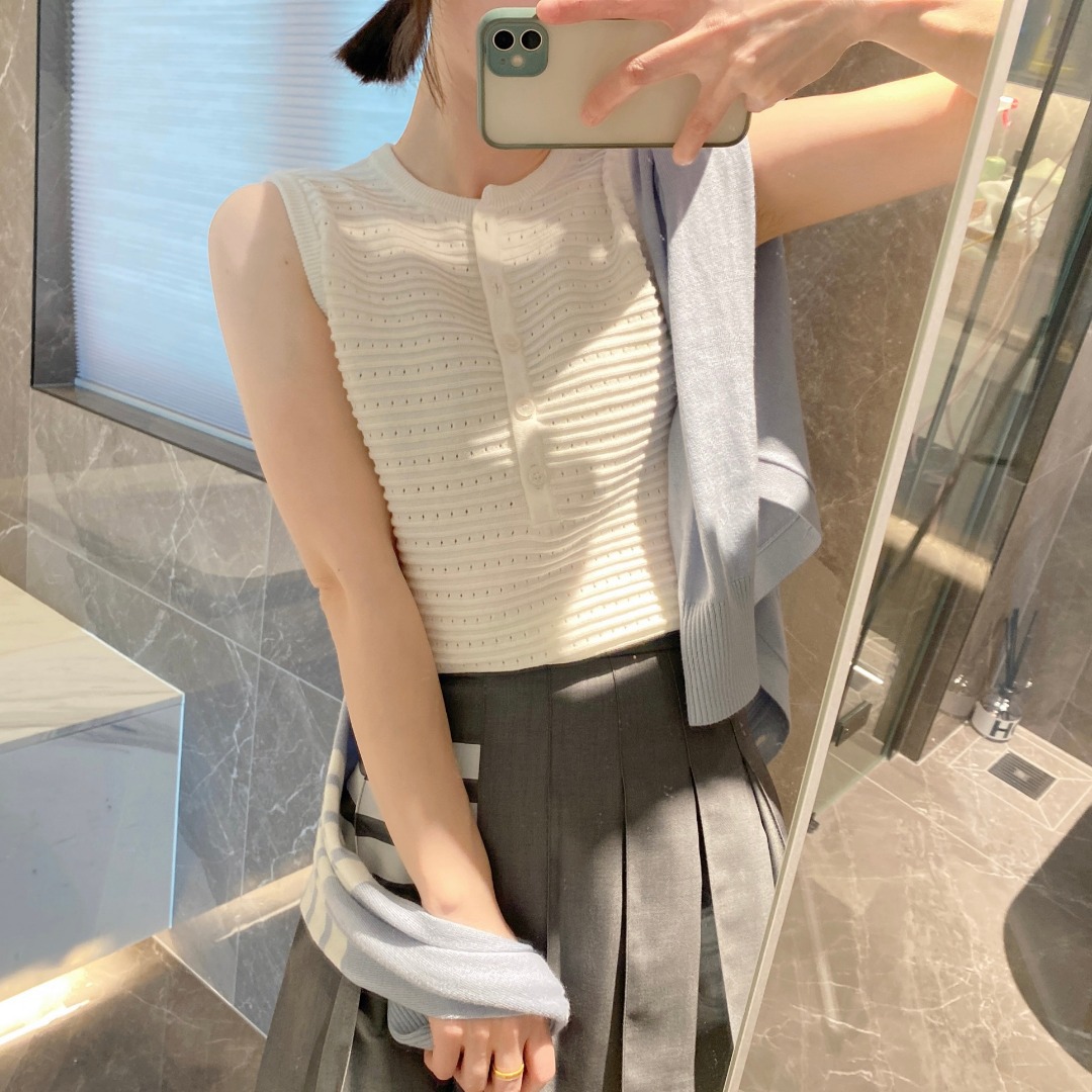 Preppy style summer new striped hollow sleeveless top
