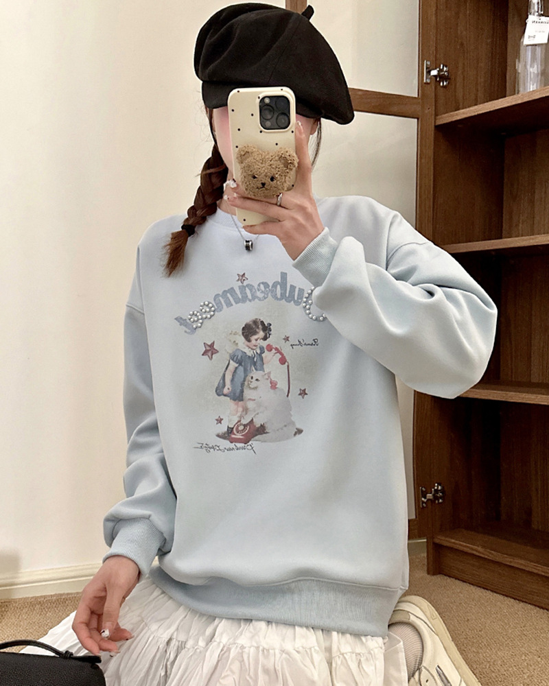 | nameOriginal | Preppy style tie-dyed cartoon printed round neck sweater Women's Small Spring and Autumn New loose pullover long sleeve shirt fashion |