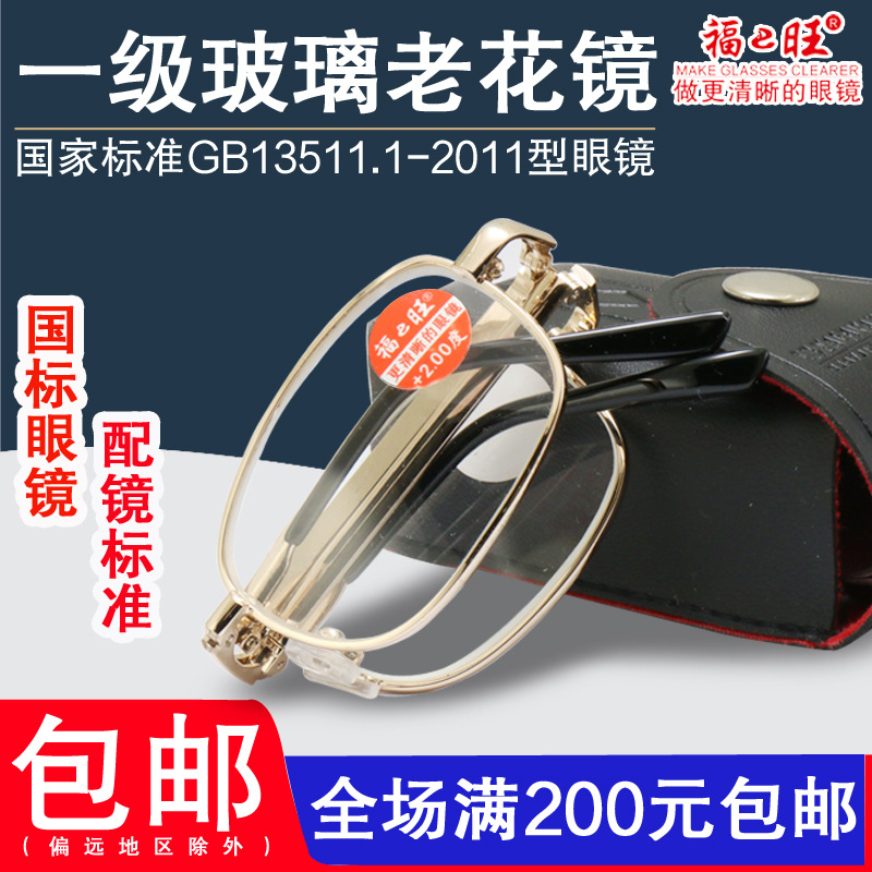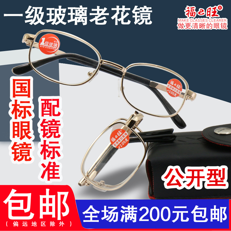 Presbyopia glasses men and women first-class glass metal frame high-definition comfortable folding Fuwang non-anti-fatigue national standard glasses