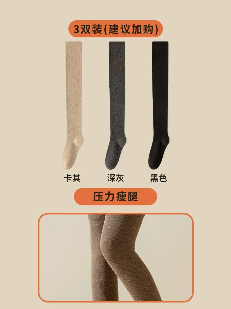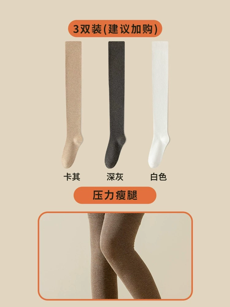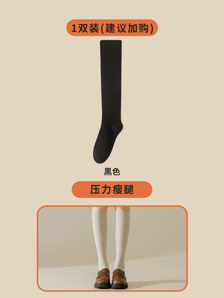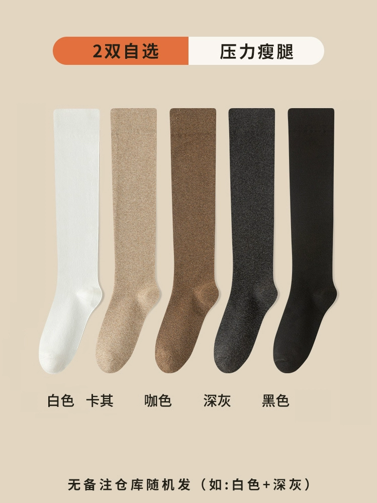 Pressure calf socks for women autumn and winter non-slip mid-calf pure cotton white over-the-knee socks spring and autumn style lucky shoes stockings