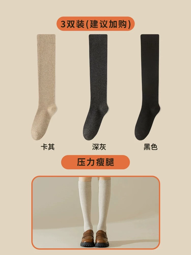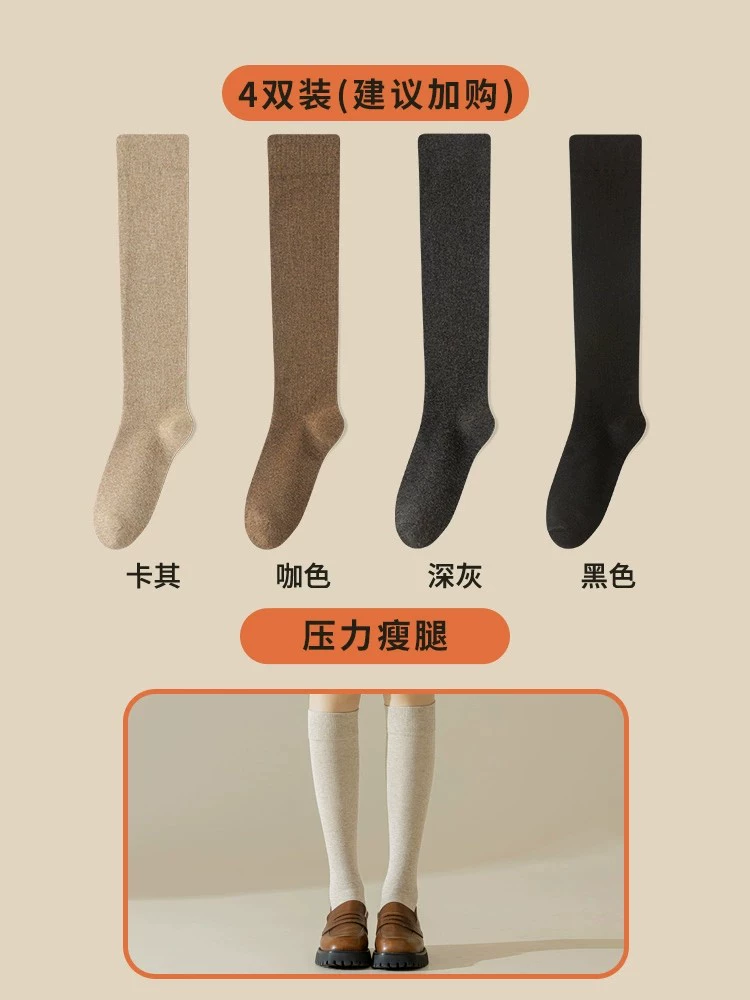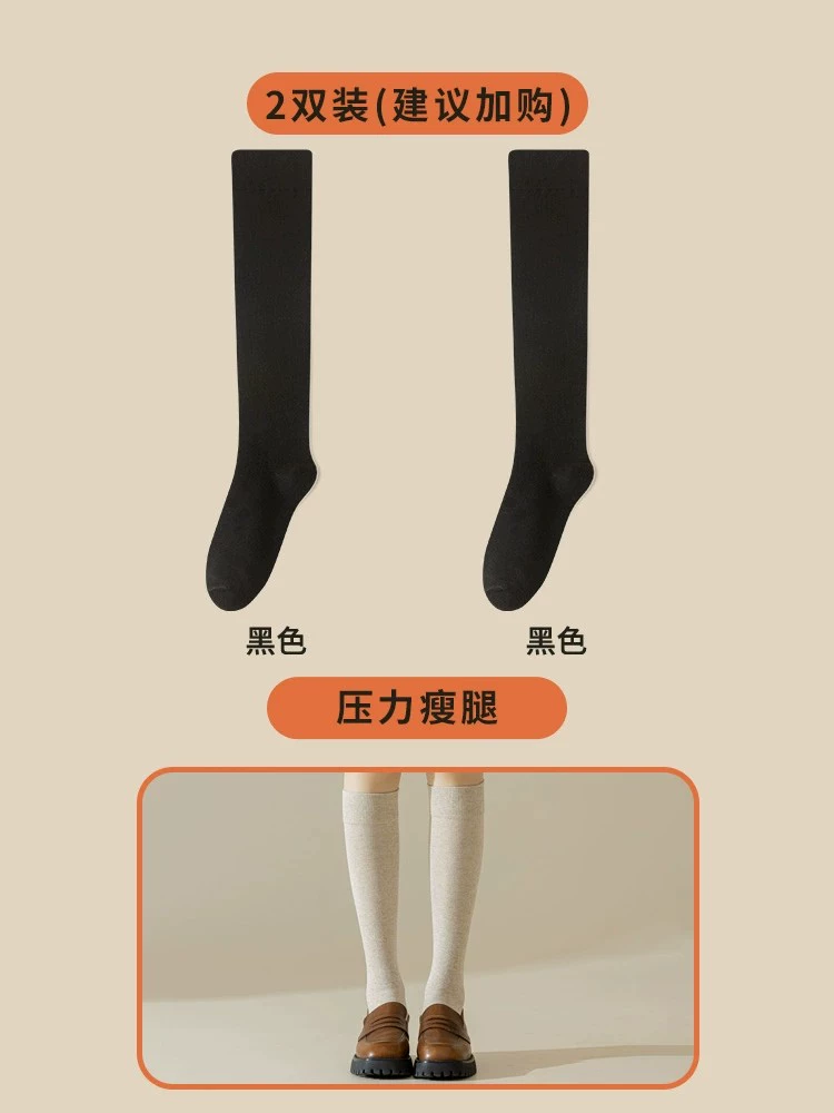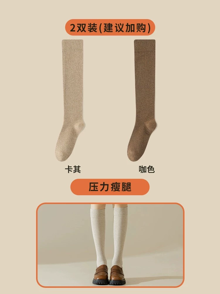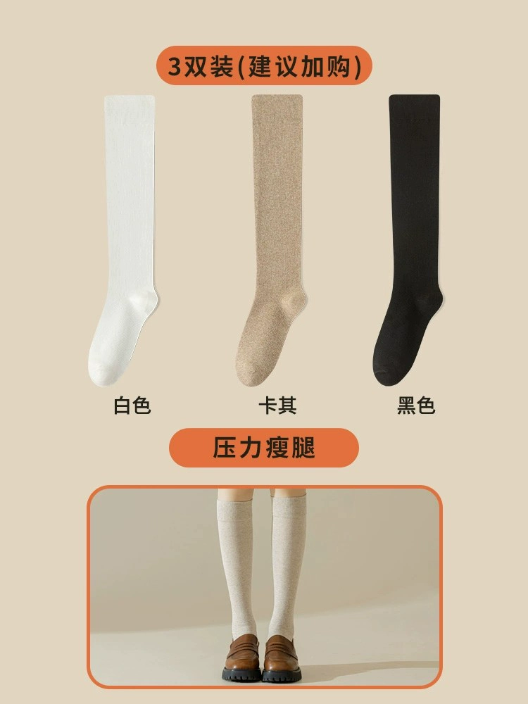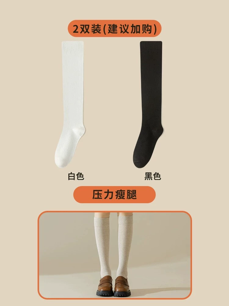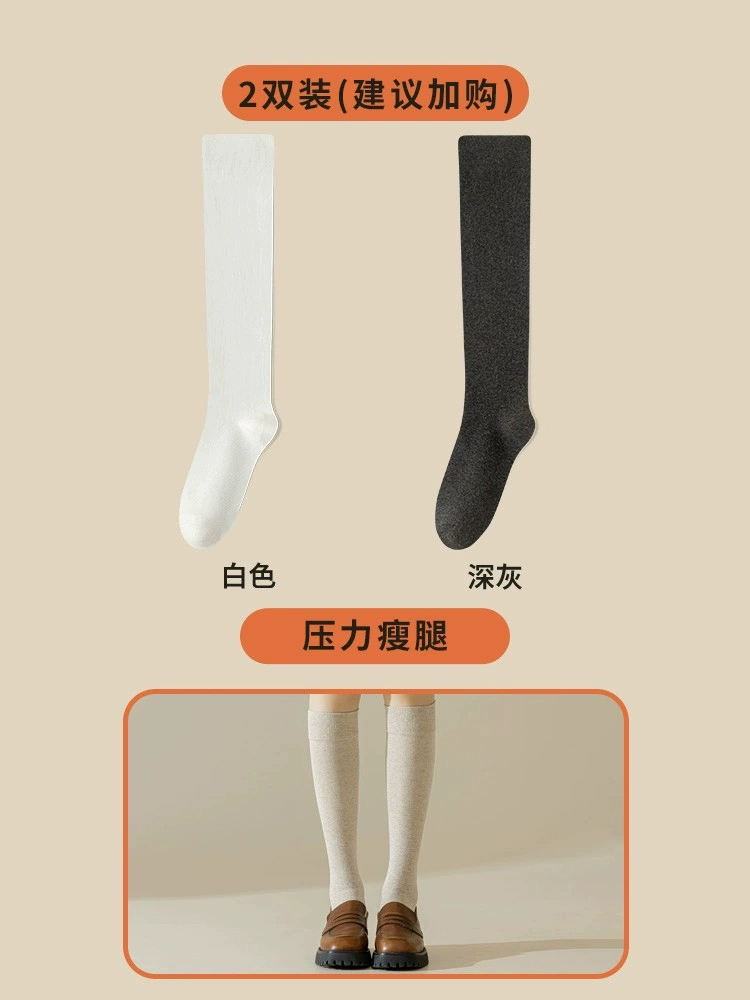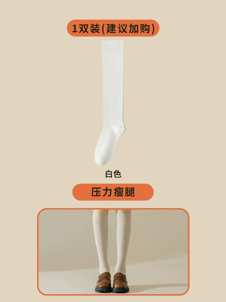 Pressure calf socks for women in autumn and winter non-slip medium tube pure cotton white over-knee socks spring and autumn style loafer shoes long stockings
