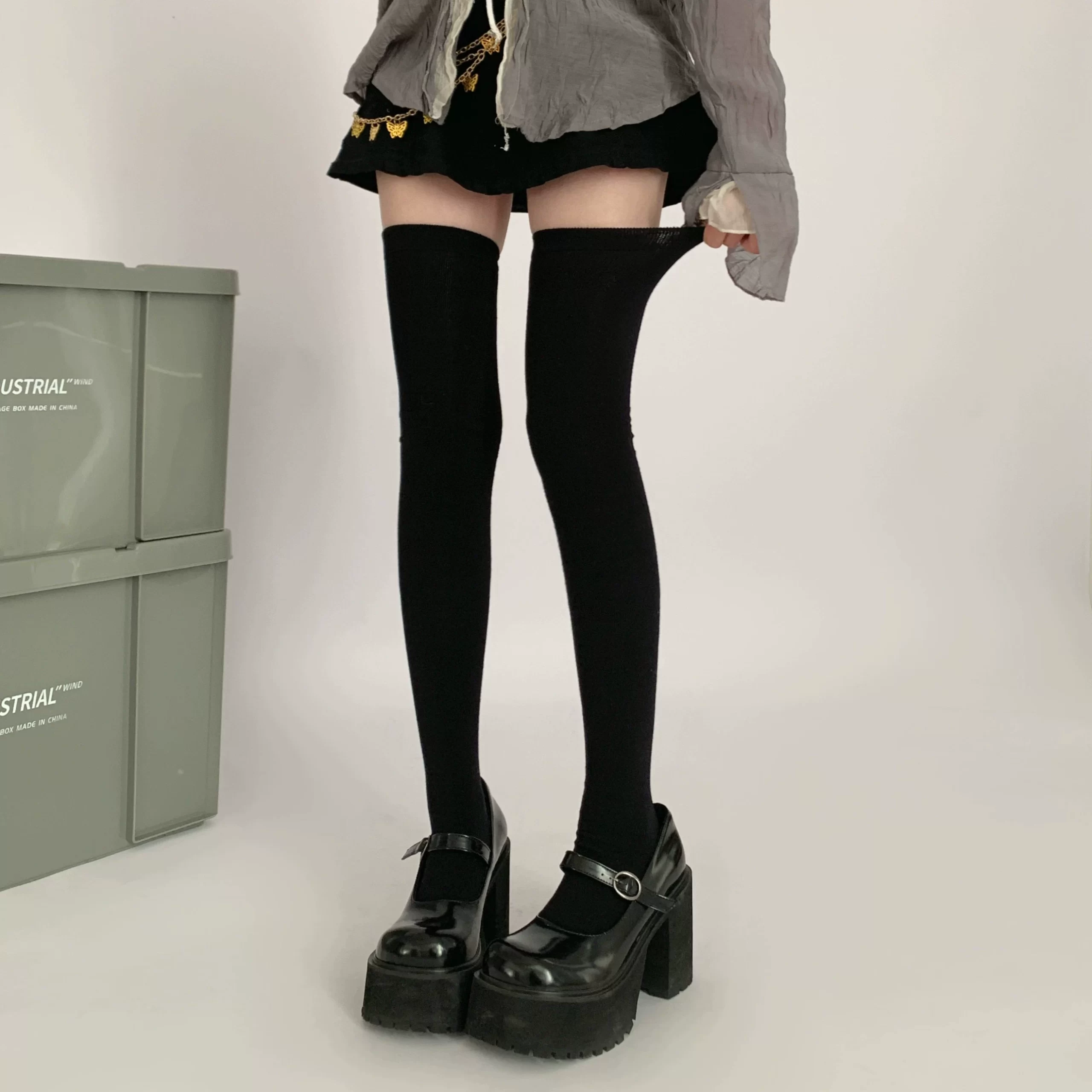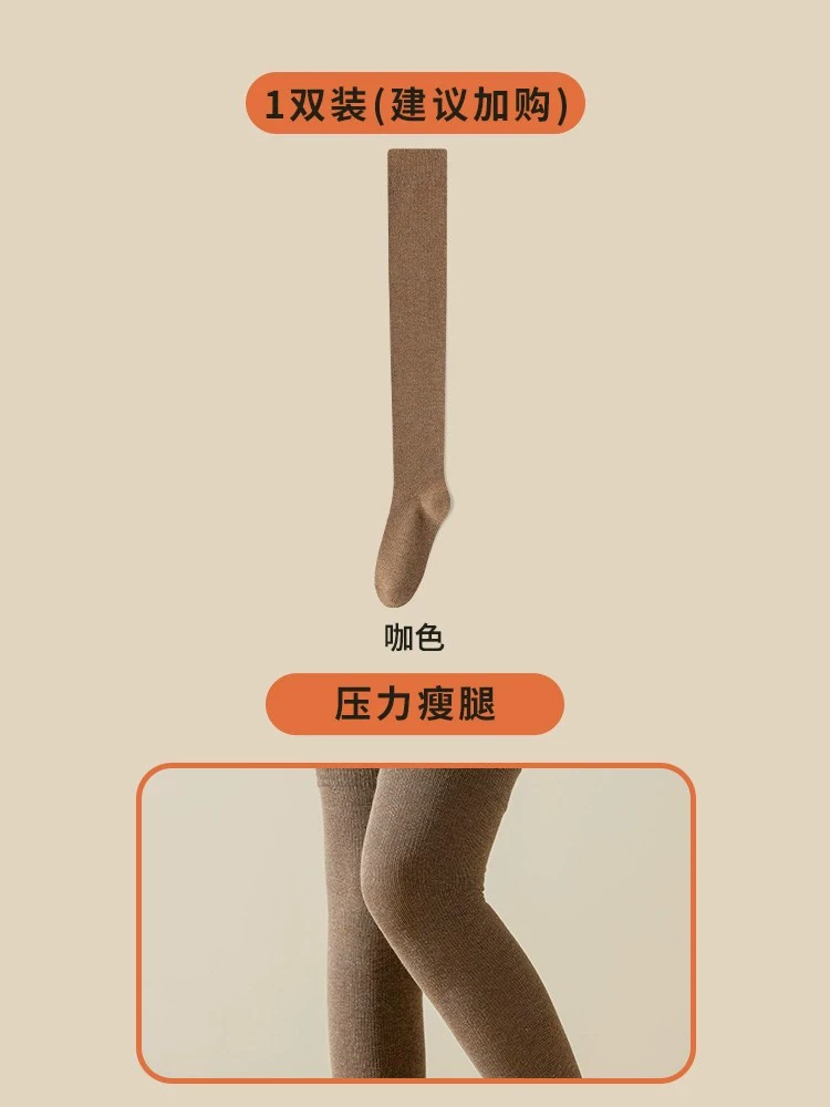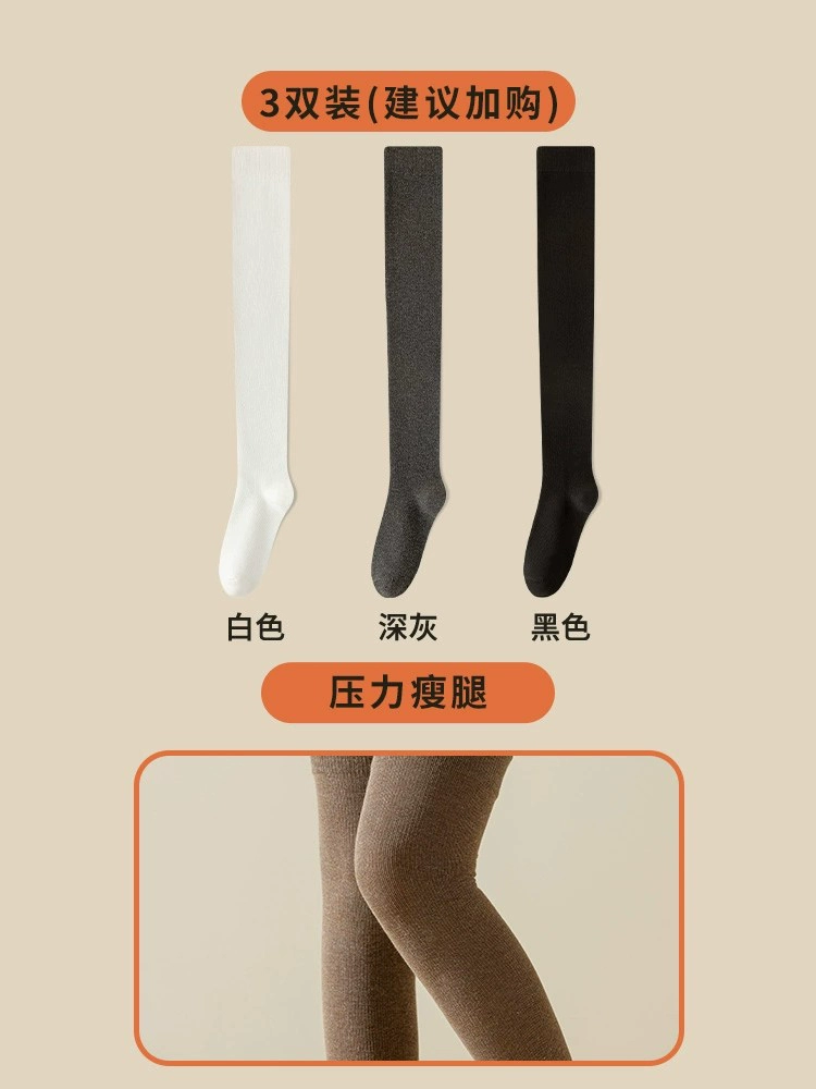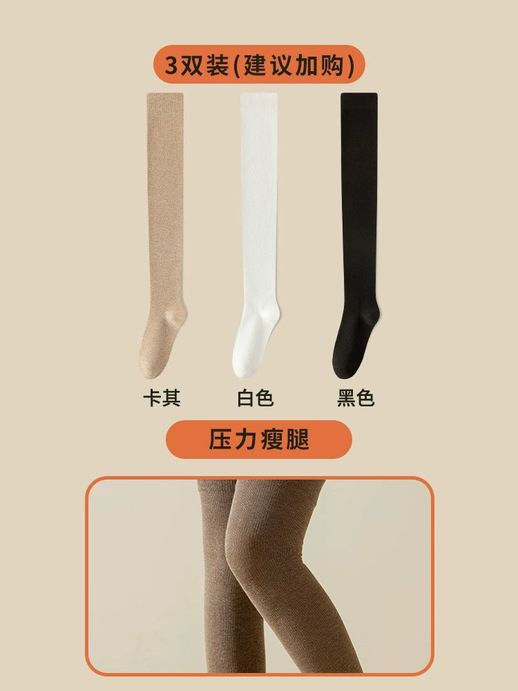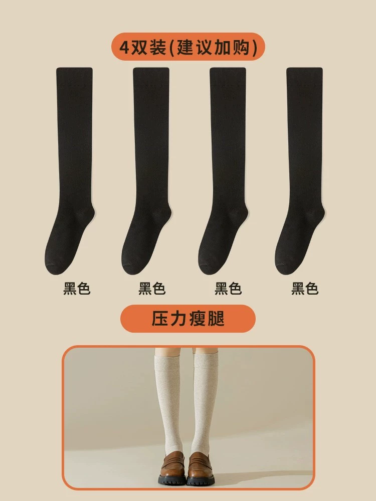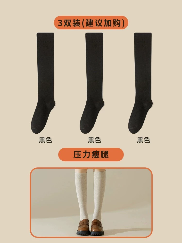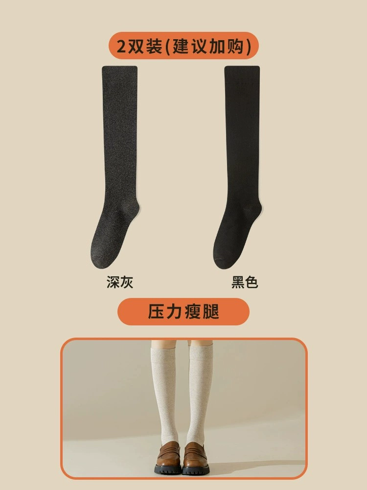 Pressure calf socks for women in autumn and winter non-slip medium tube pure cotton white over-knee socks spring and autumn style loafer shoes long stockings
