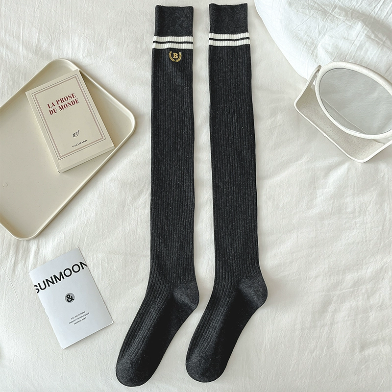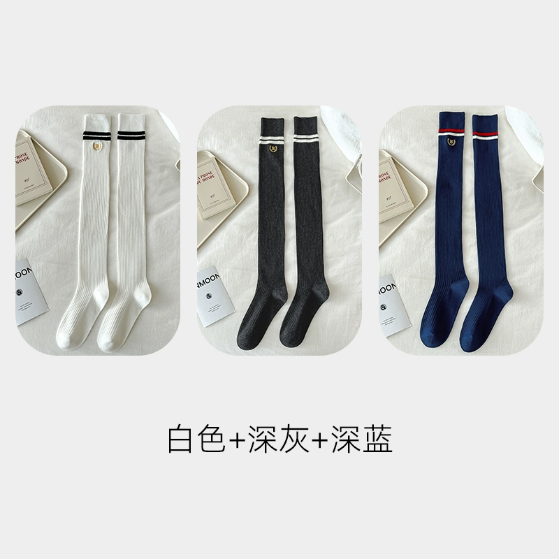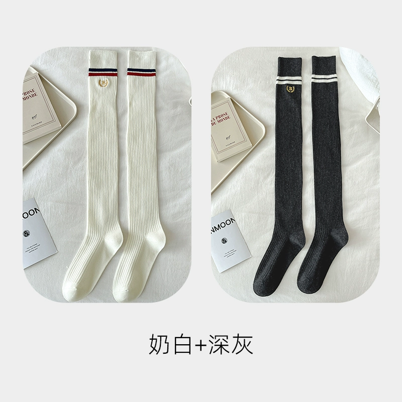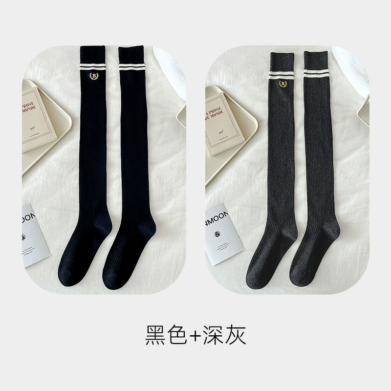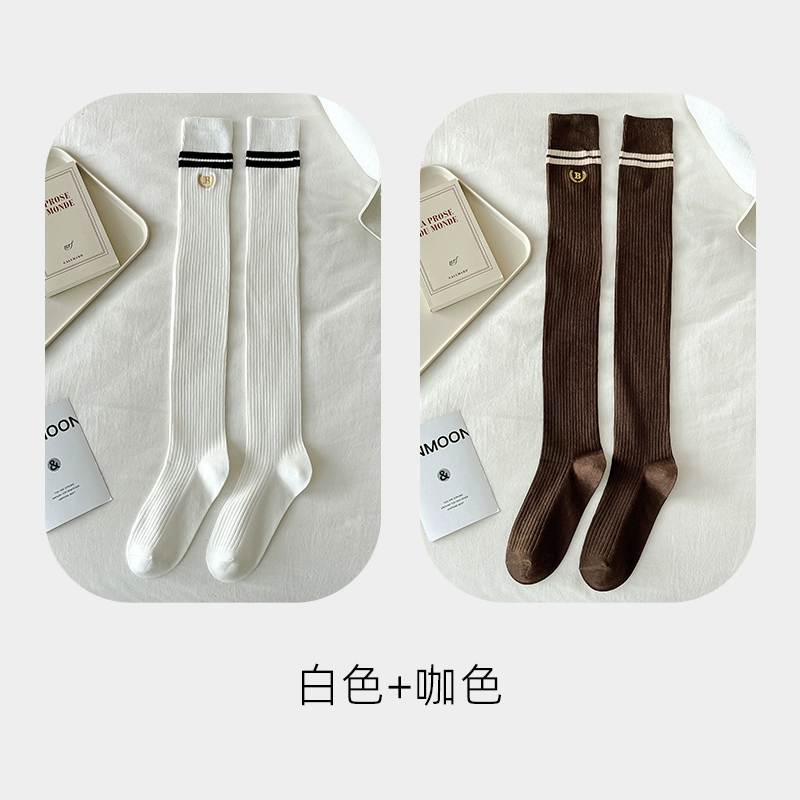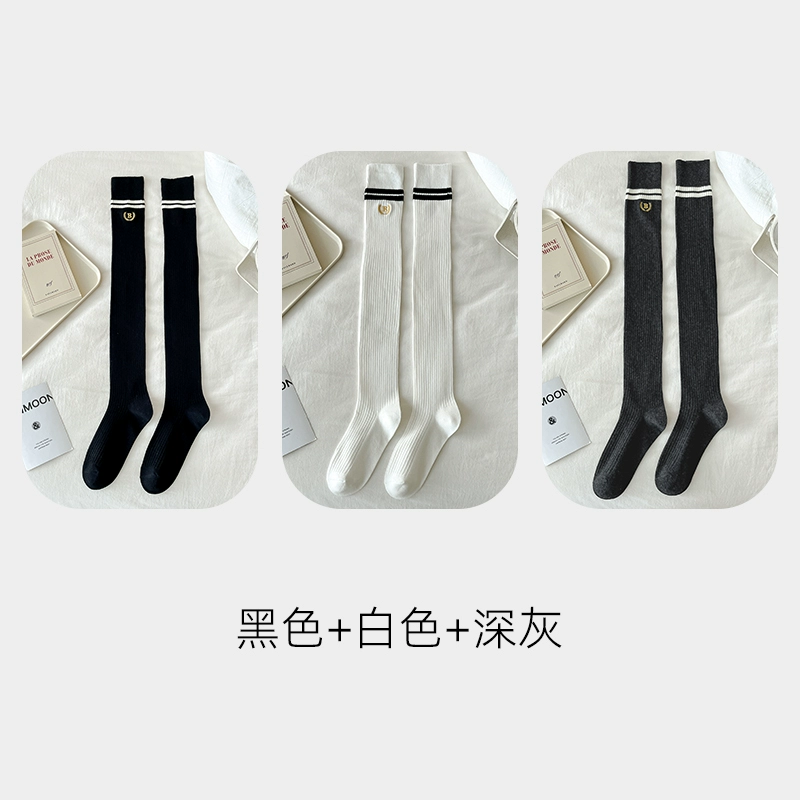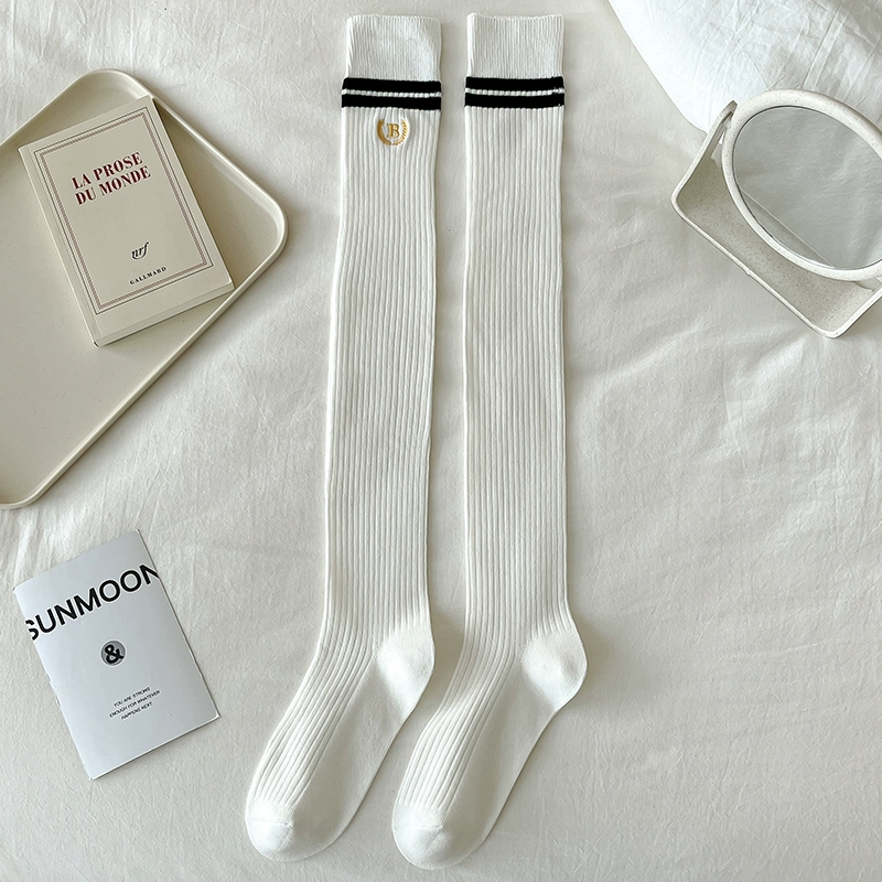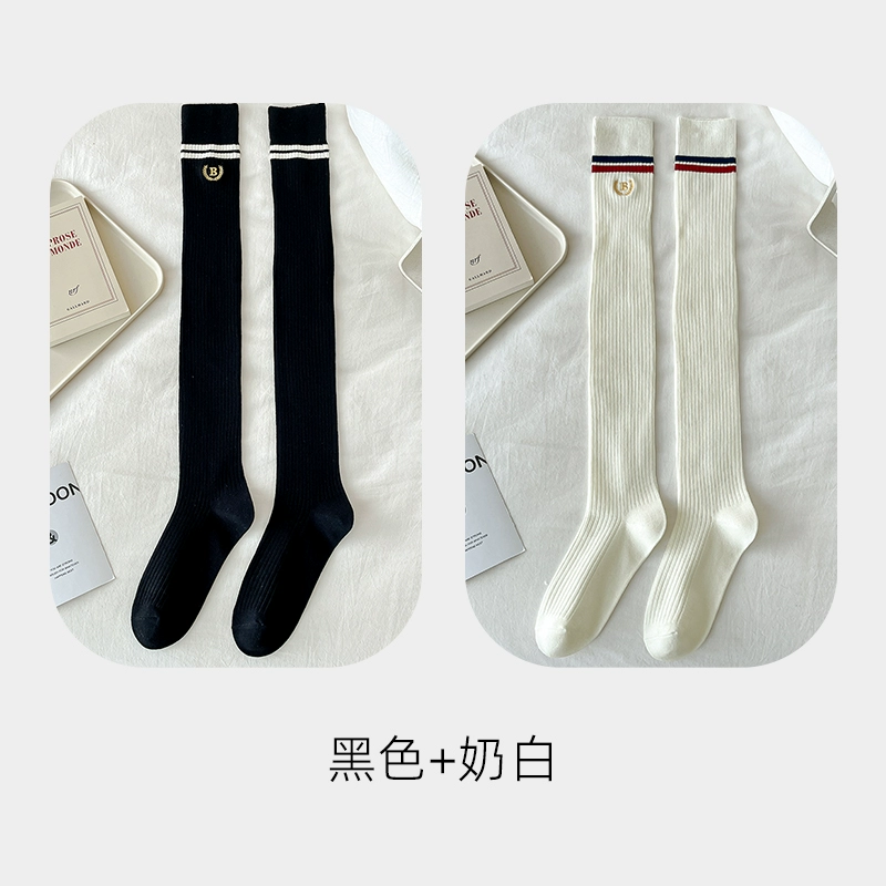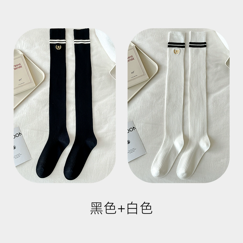 | nameOriginal | Pressure stovepipe over-the-knee socks for women spring and autumn college style two-bar pure cotton JK black and white long socks high thigh socks |