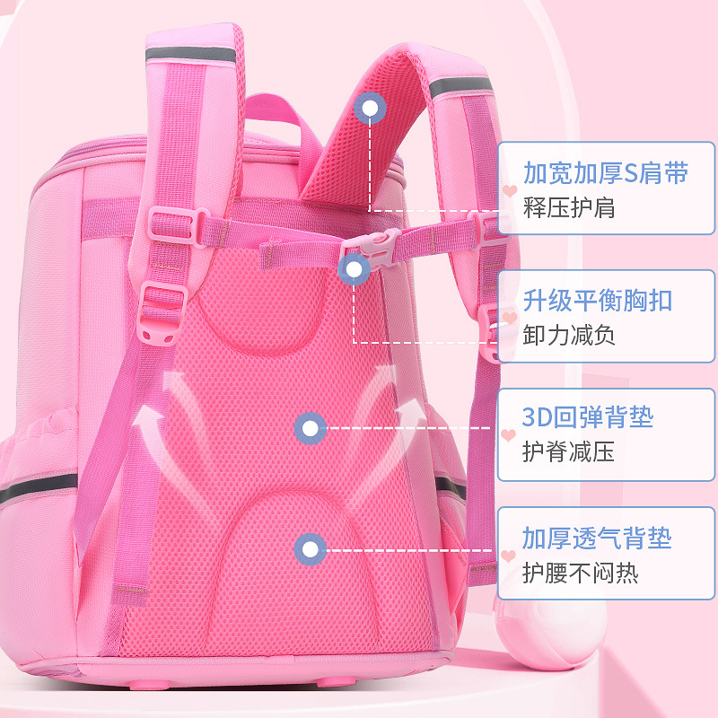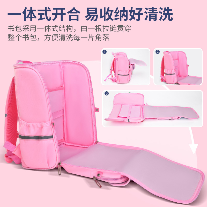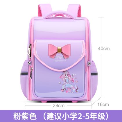 Primary school student schoolbag large capacity burden relief spine protection children’s backpack girls’ PU leather waterproof stain-resistant lightweight backpack