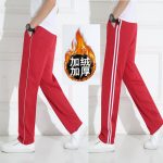 | nameOriginal | Primary school students autumn and winter plus velvet padded school uniform pants a bar pants junior high school students white-rimmed school pants red sports pants |