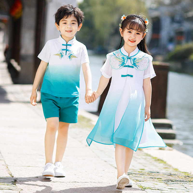| nameOriginal | Primary School Students' Class Clothes Chinese Ethnic Style Kindergarten Garden Clothes Summer Children's Chinese Studies Hanfu School Uniform Summer Performance Clothes |