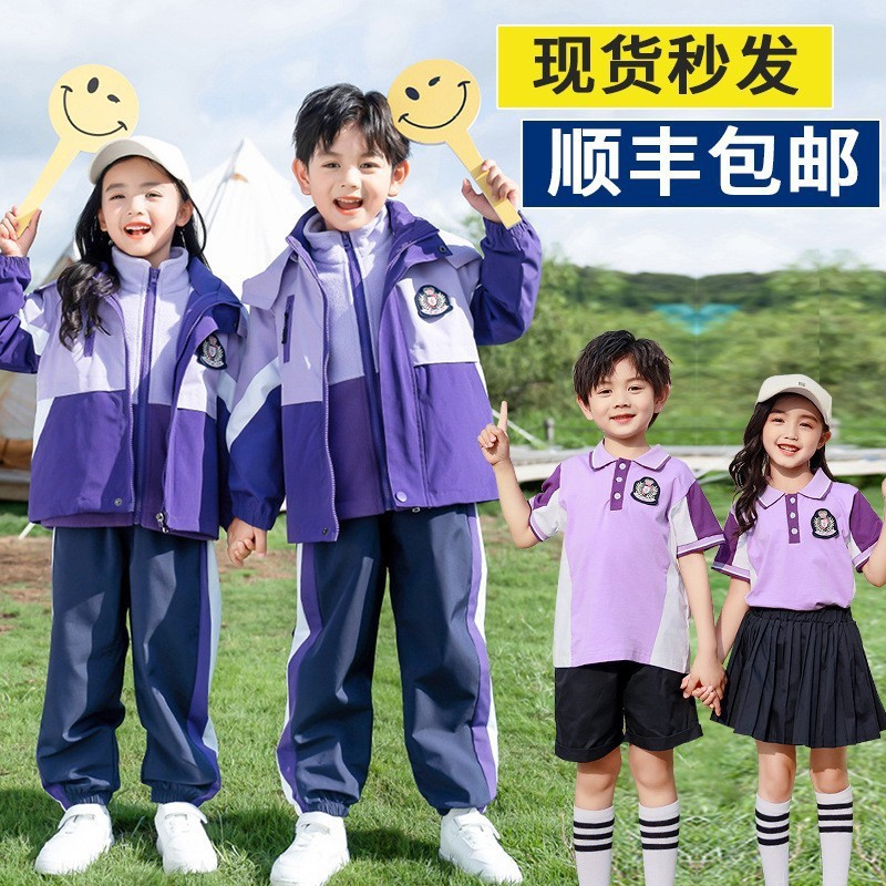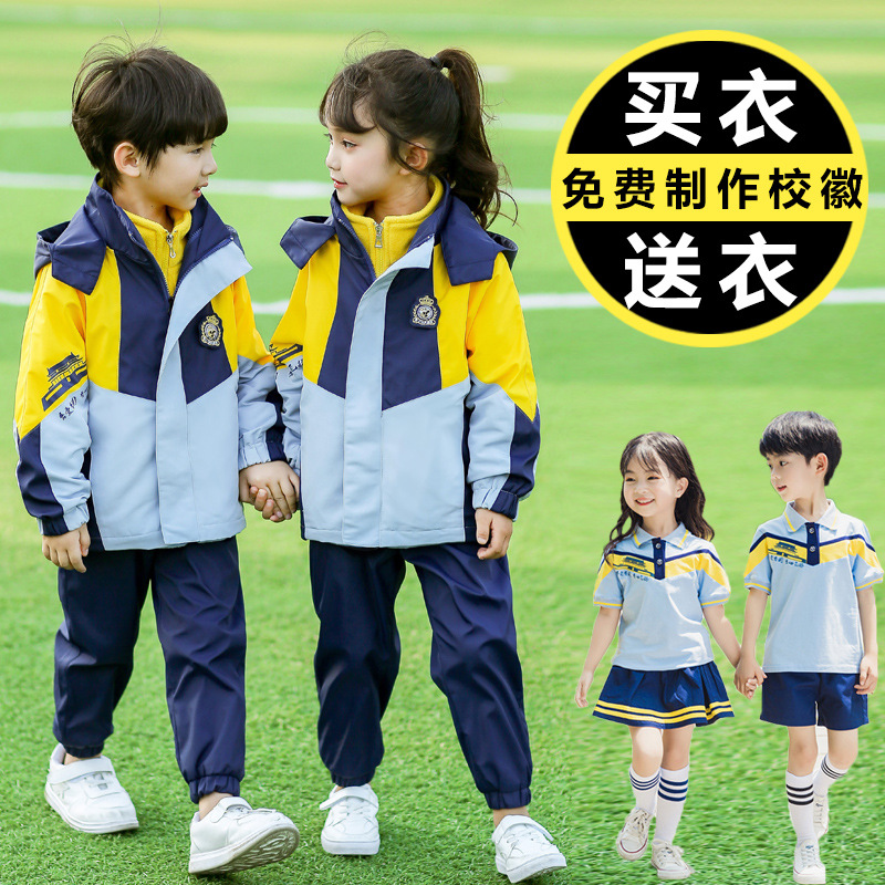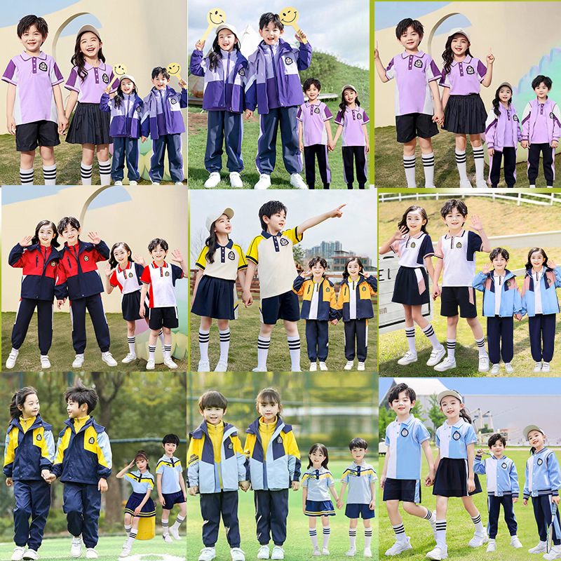 | nameOriginal | Primary school students' rush clothes school uniforms spring and autumn three-piece kindergarten clothes summer short-sleeved children's sports class clothes |