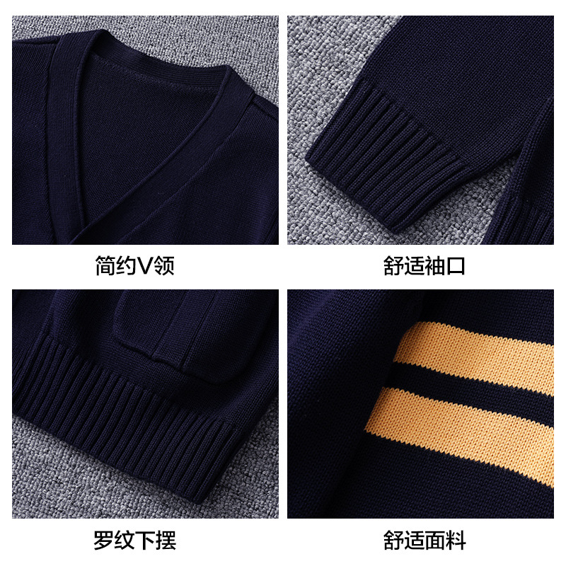 | nameOriginal | Primary School Uniform Cardigan Girls' Sweater All Cotton Navy Blue Knitted Shirt Children's Coat Boys' College Style Class Clothes |