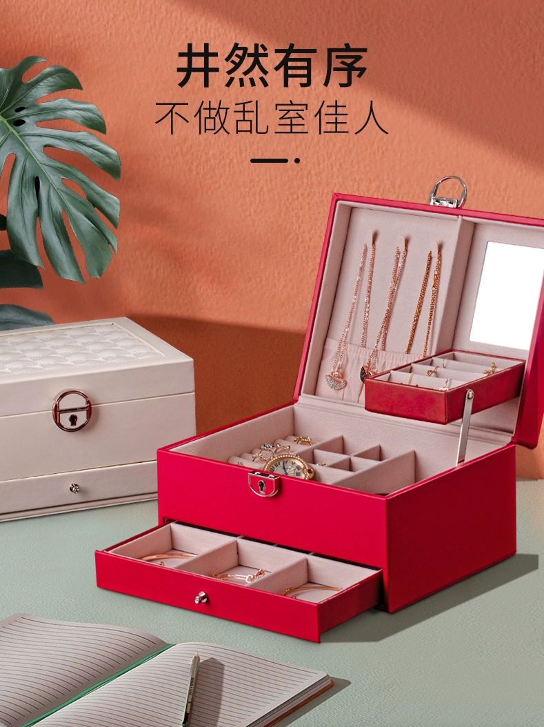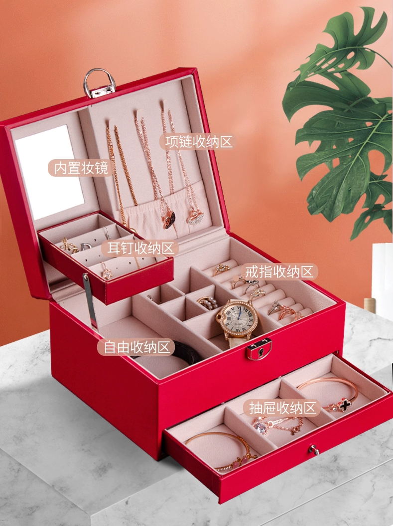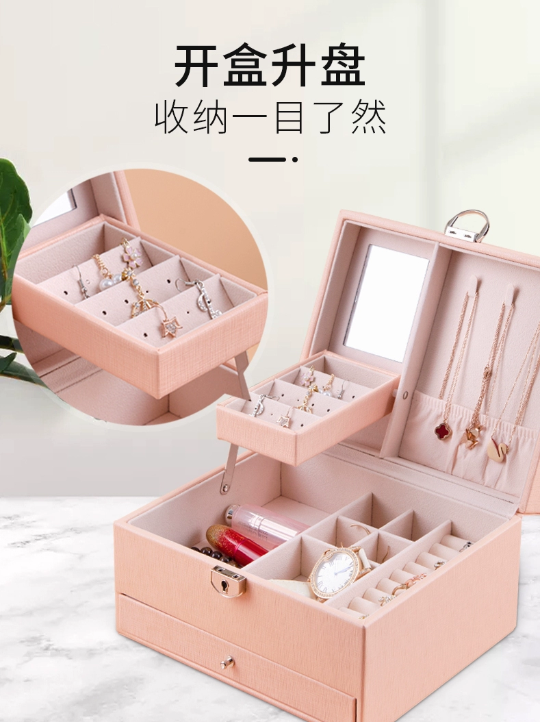 Princess Huiyaxiu jewelry storage box large-capacity double-layer multi-functional ring necklace jewelry box with lock gift box