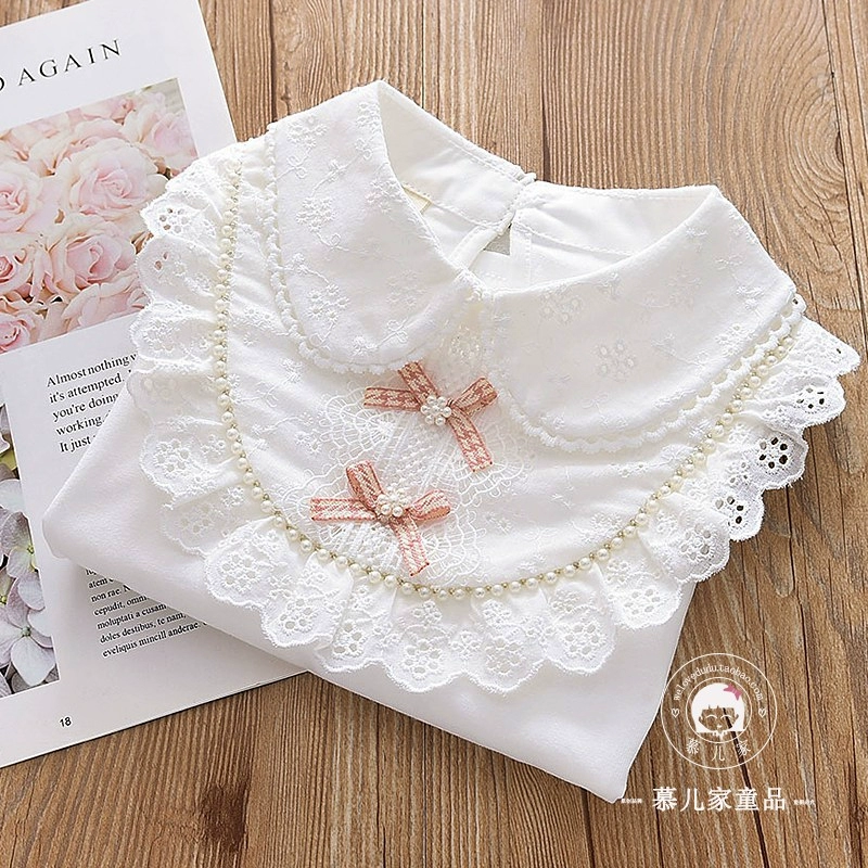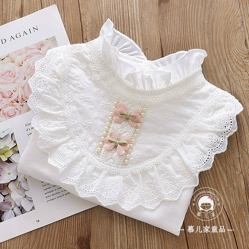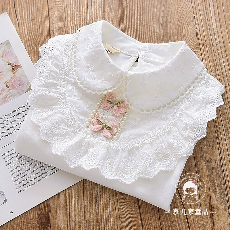 | nameOriginal | Princess shirt pure cotton girls bottoming shirt children's lapel lace large lapel shirt children's stand collar T-shirt new |