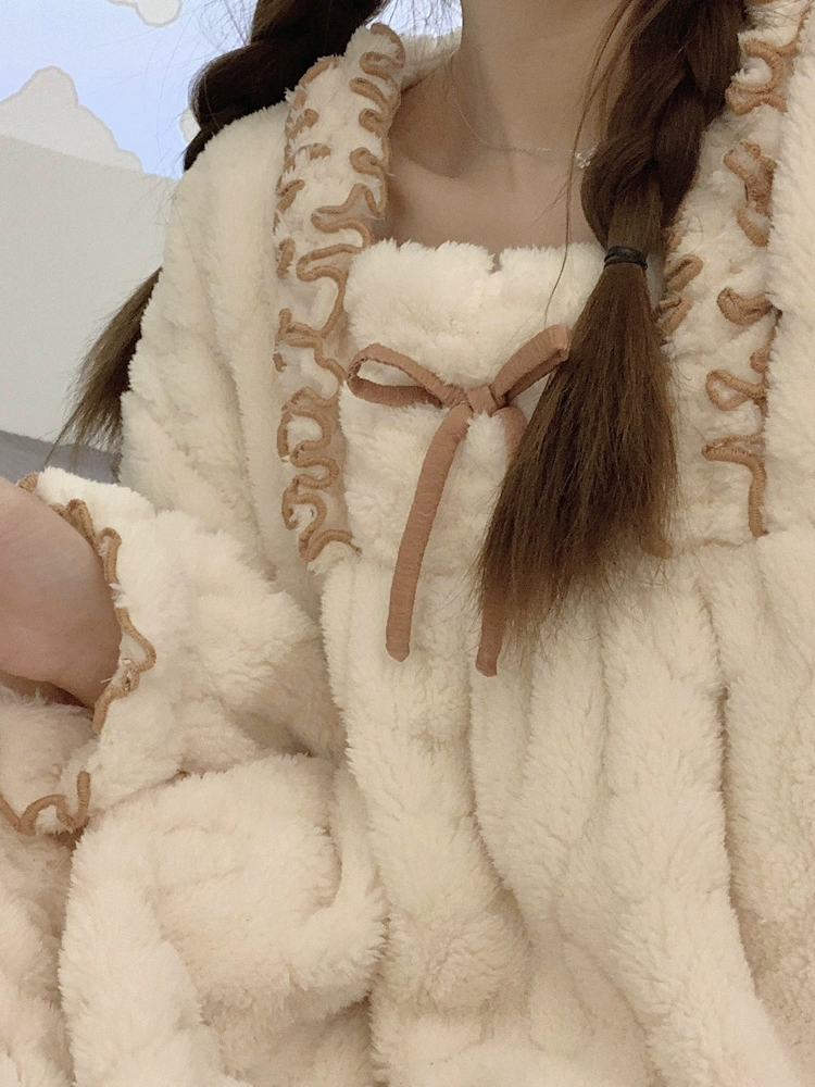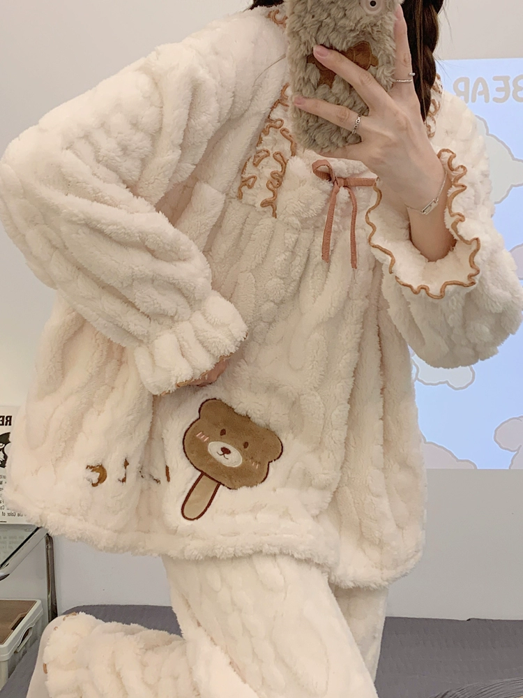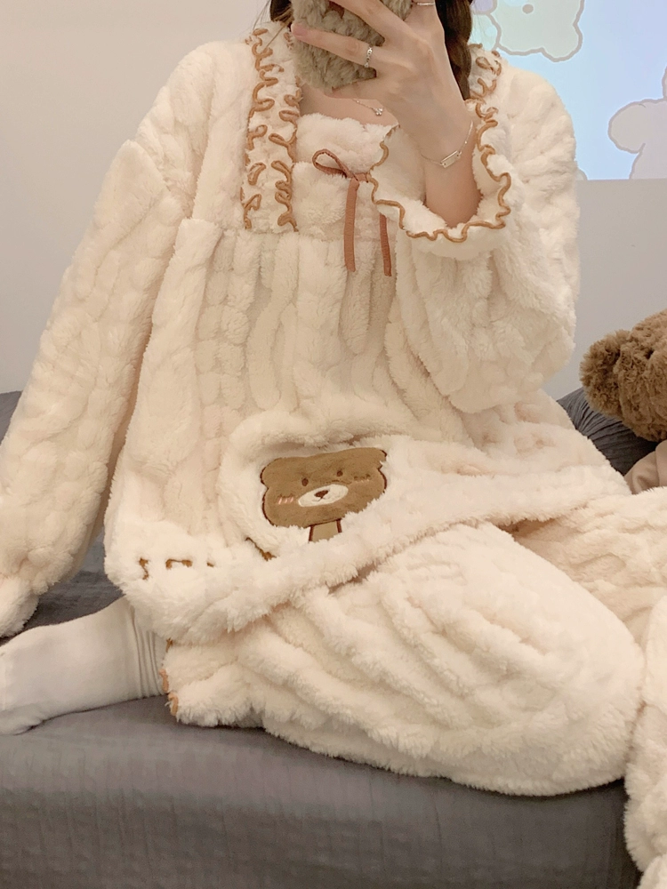 | nameOriginal | Princess style coral velvet pajamas for girls in autumn and winter thickened plus velvet little brown bear cute internet celebrity style home wear set |